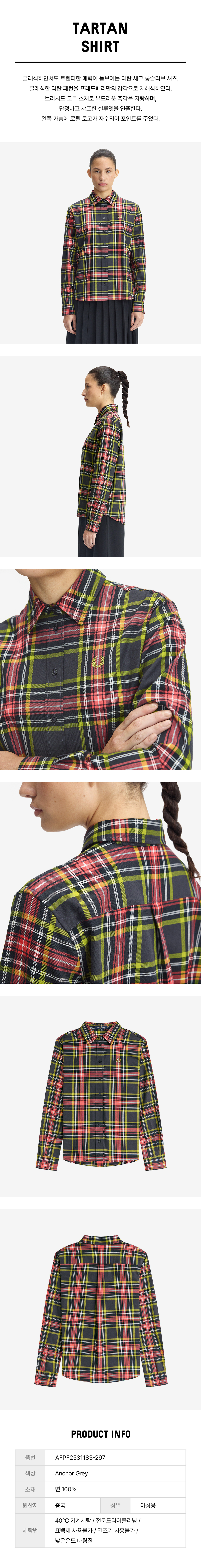 프레드 페리 우먼스 타탄 셔츠 앵커 그레이