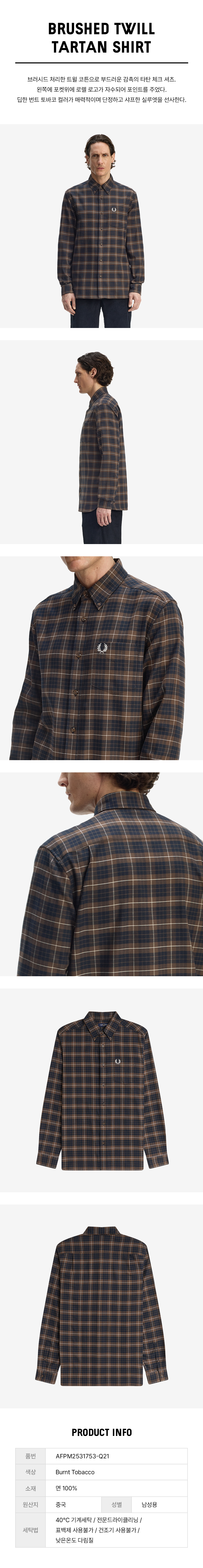프레드 페리 브러시드 트윌 타탄 셔츠 번트 토바코