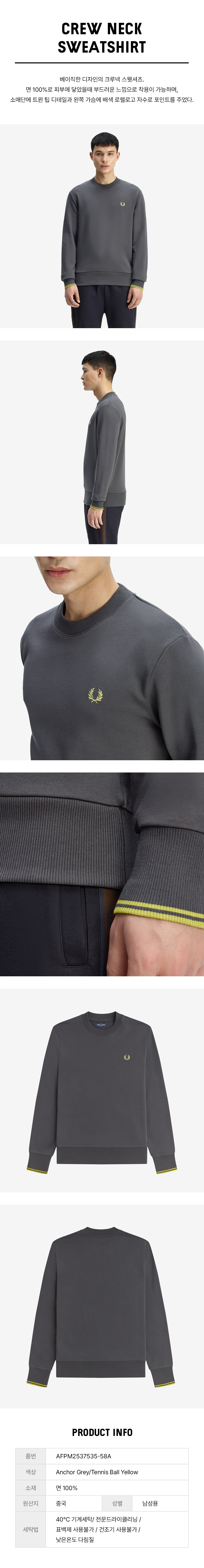프레드 페리 크루넥 스웻셔츠 앵커그레이 테니스볼 옐로우