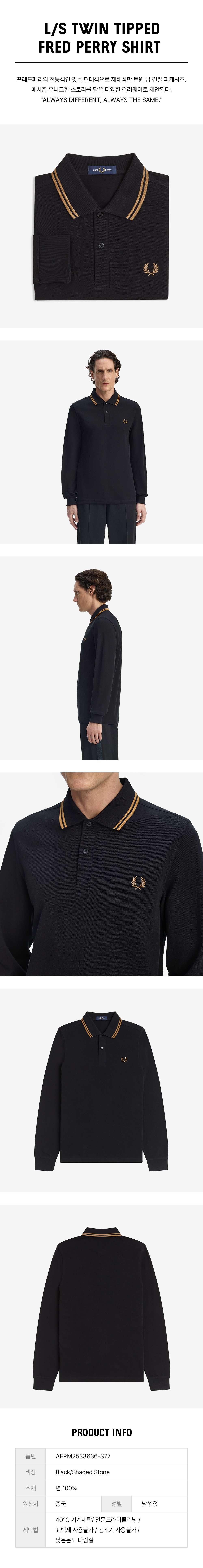 프레드 페리 M3636 롱 슬리브 트윈 팁 프레드 페리 셔츠 블랙 쉐이디드 스톤