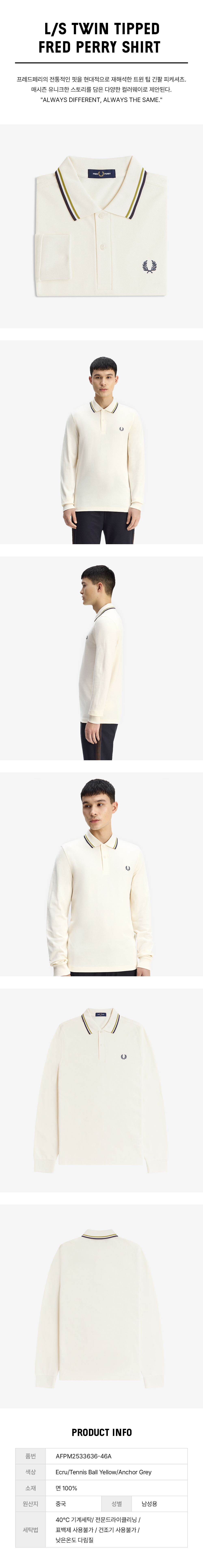 프레드 페리 M3636 롱 슬리브 트윈 팁 프레드 페리 셔츠 에크루 테니스볼 옐로우 앵커그레이