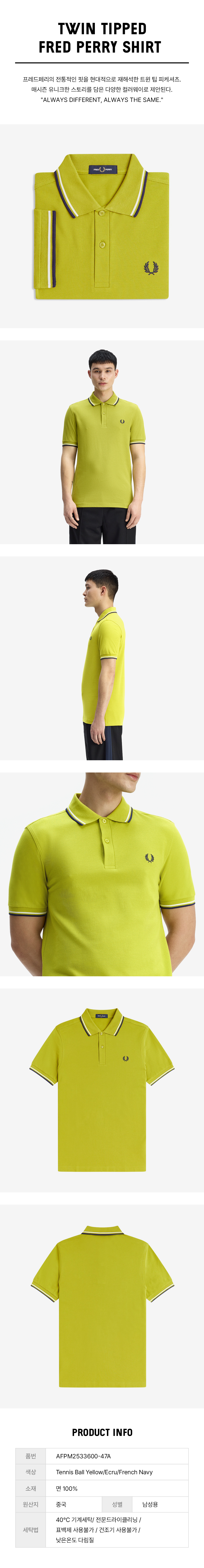 프레드 페리 M3600 트윈 팁 프레드 페리 셔츠 테니스볼옐로우 에크루 프렌치네이비