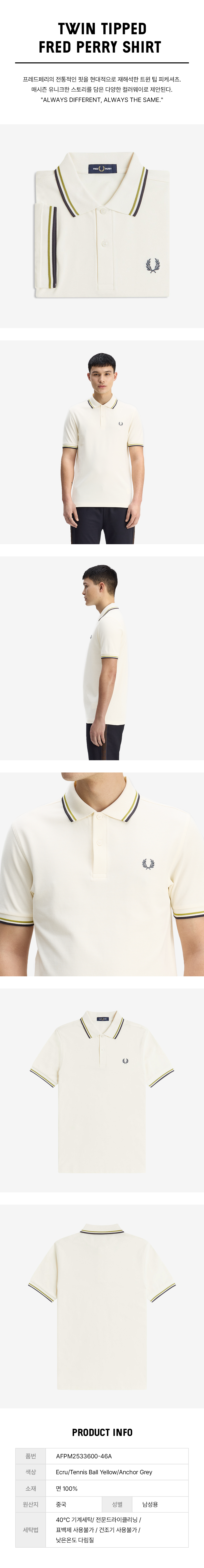 프레드 페리 M3600 트윈 팁 프레드 페리 셔츠 에크루 테니스볼 옐로우 앵커그레이