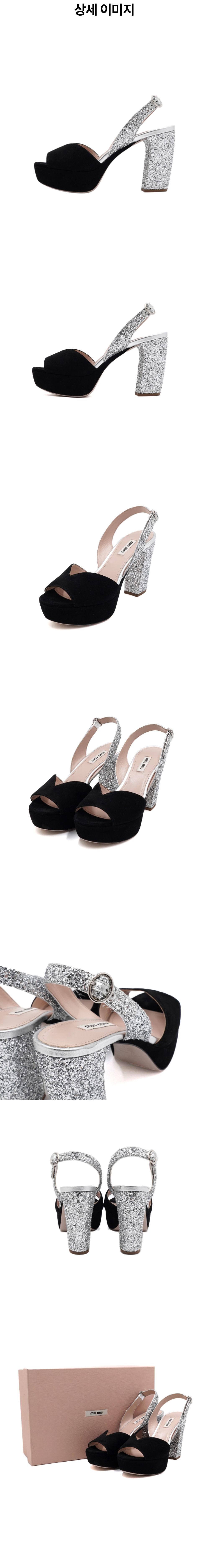 미우미우 5XP833 블랙 스웨이드 글리터 여성 플랫폼 힐 샌들 구두 aa58038