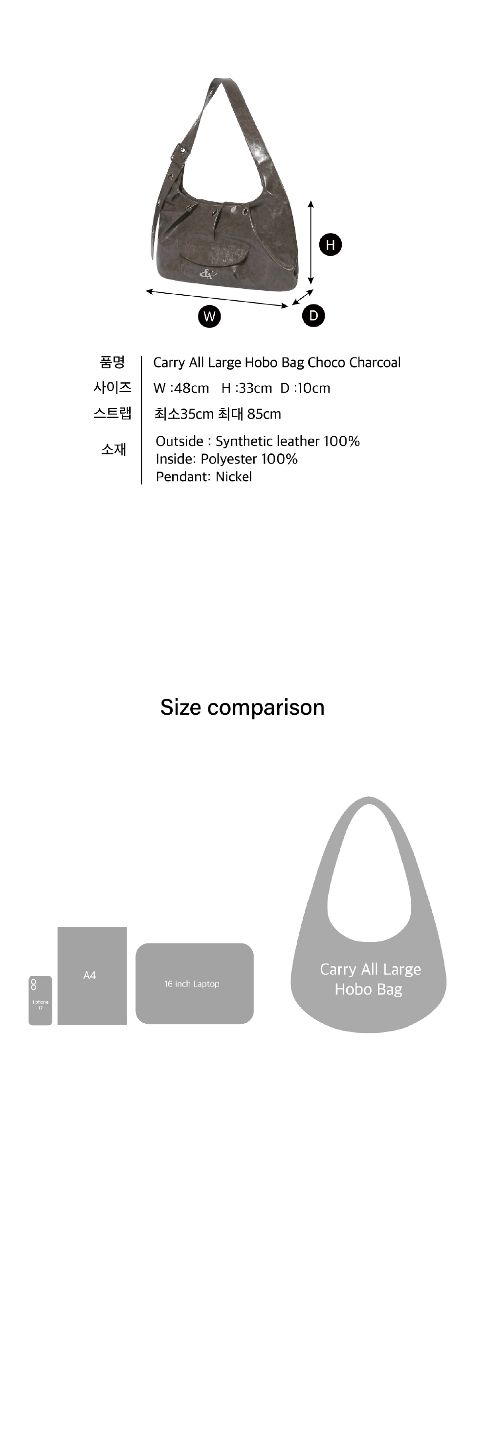 포어필 캐리 올 라지 호보백 초코 차콜
