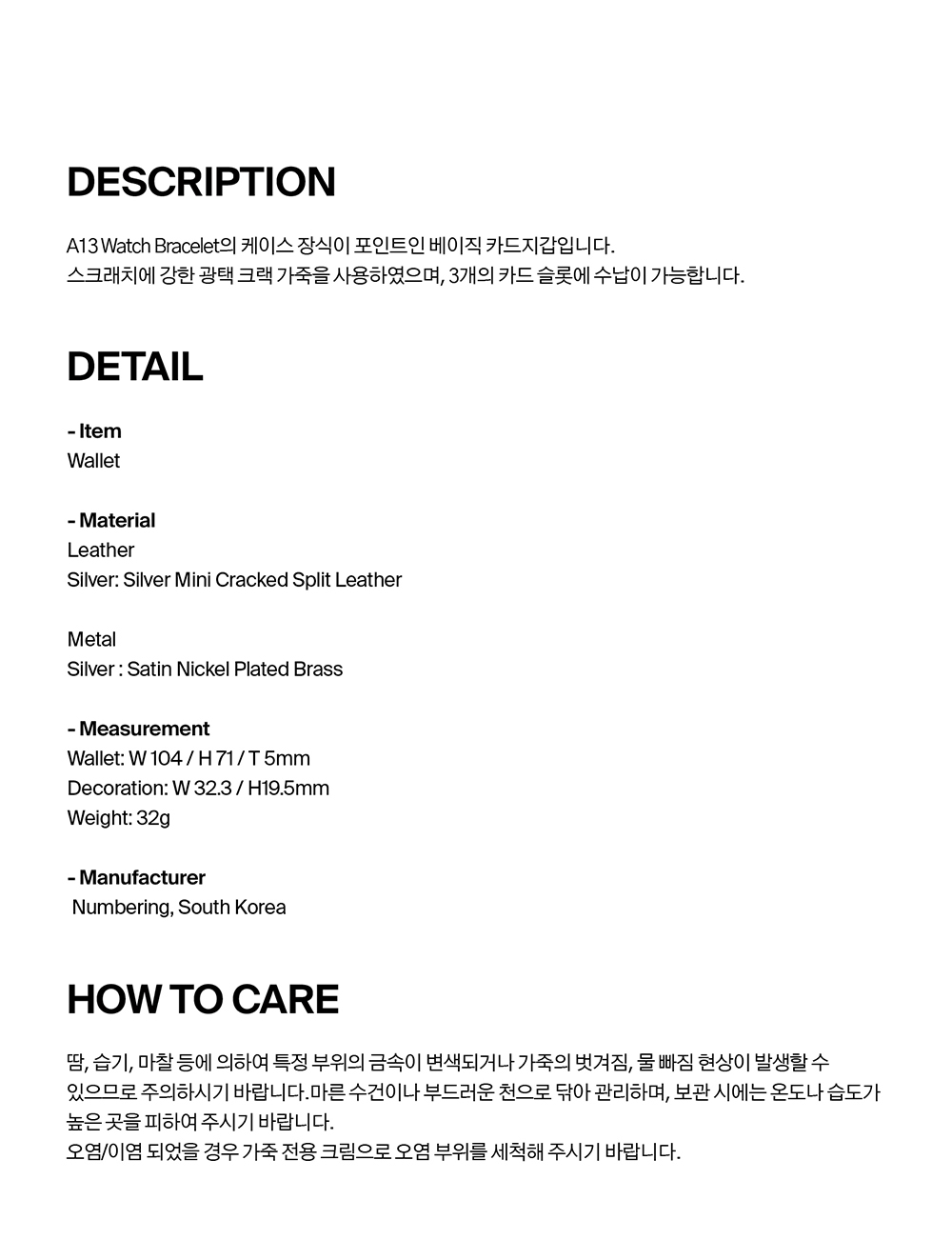 [KREAM 단독] NUMBERING #1050 Cracked Leather Card Holder Silver