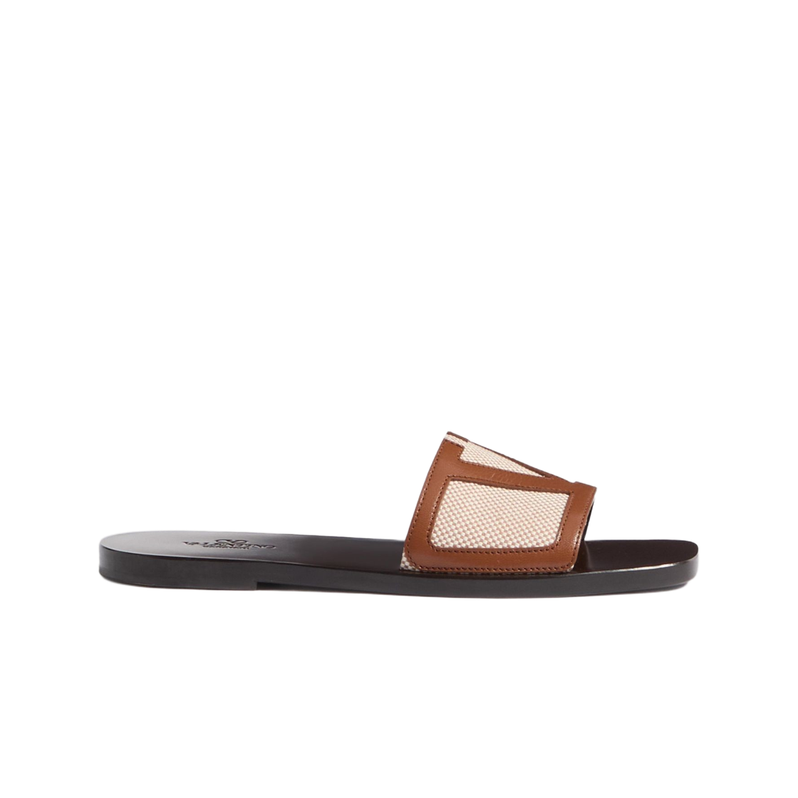 발렌티노 비바 슈퍼스타 캔버스 패브릭 나파 레더 슬라이드 샌들 내츄럴 토바코