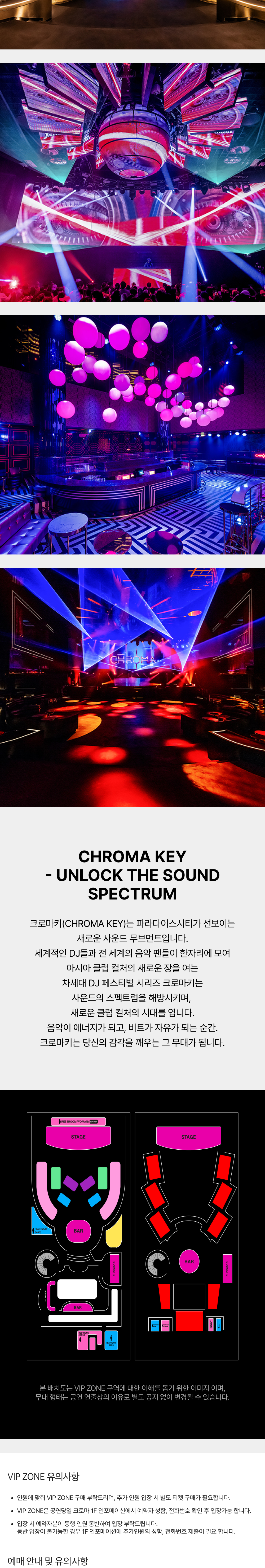-크로마키 행사장 내 공식 포토 그래퍼가 촬영한 사진 및 영상에 대한 저작권은 행사 주최/주관사에 있으며 차후 파티와 관련되어 홍보 및 마케팅자료로 활용될수 있습니다. (티켓 구매자들은 이에 동의한것으로 간주 됩니다.)
