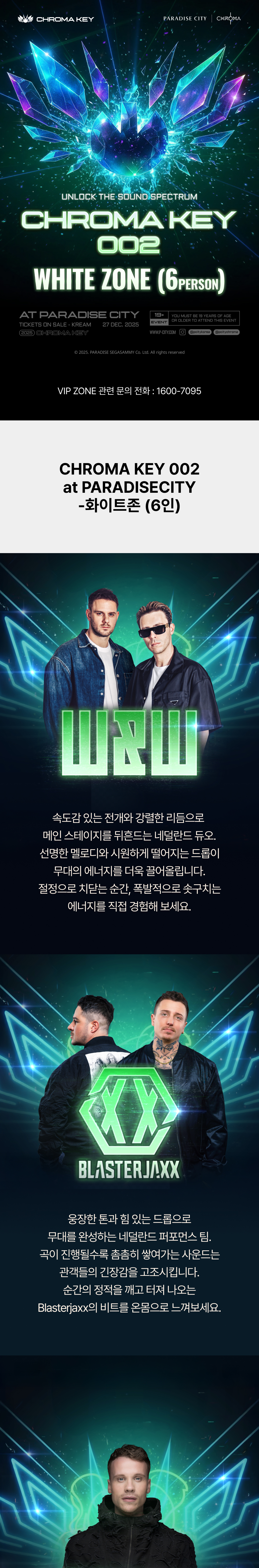 -크로마키 행사장 내 공식 포토 그래퍼가 촬영한 사진 및 영상에 대한 저작권은 행사 주최/주관사에 있으며 차후 파티와 관련되어 홍보 및 마케팅자료로 활용될수 있습니다. (티켓 구매자들은 이에 동의한것으로 간주 됩니다.)