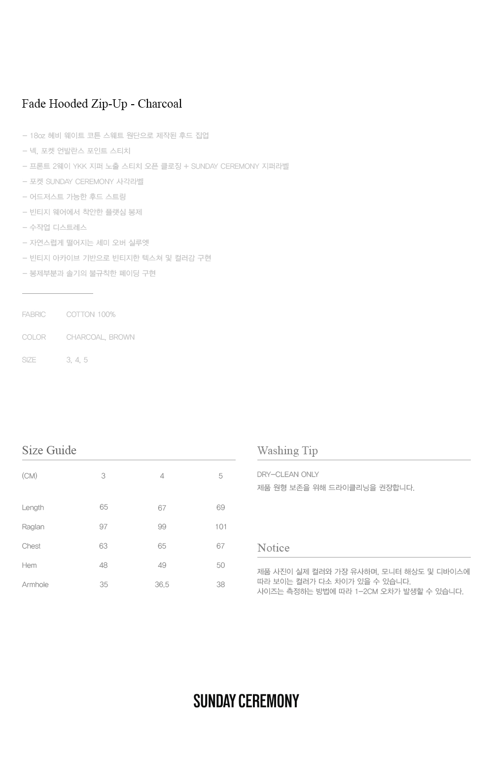 선데이세레머니 페이드 후드 집업 - 차콜