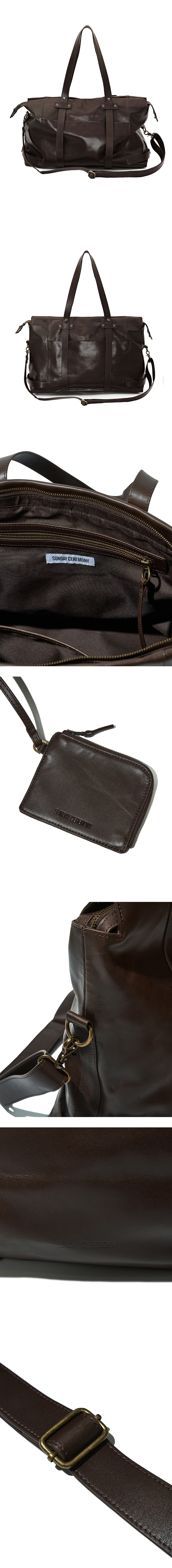 선데이세레머니 크랙 레더 투웨이 토트 백 - 브라운