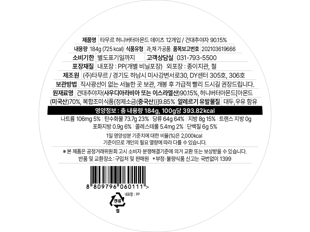 타무르 허니 버터 아몬드 데이츠 12개입