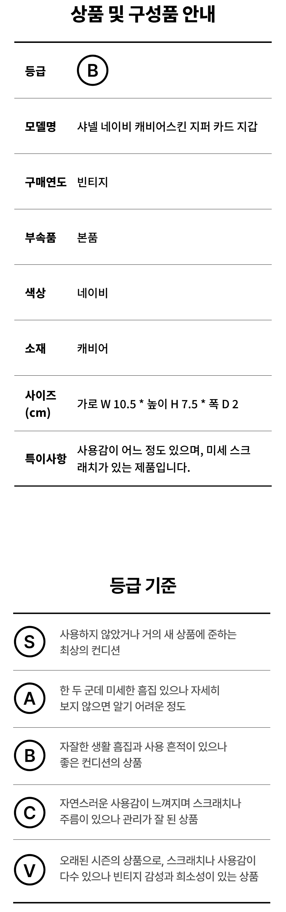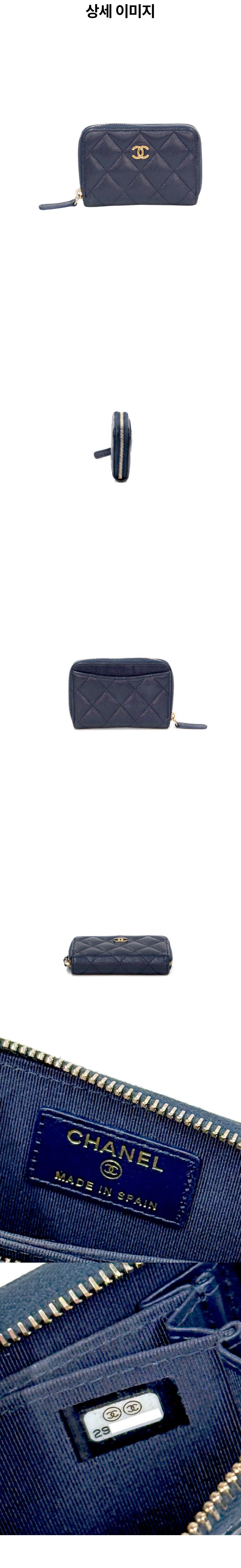 샤넬 네이비 캐비어스킨 지퍼 카드 지갑 C-B41620