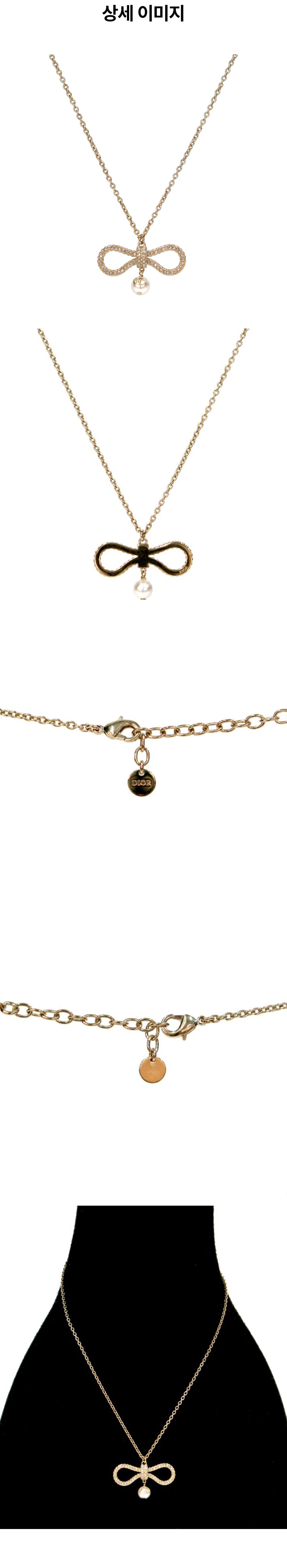 디올 리본 펄 드롭 CD 골드 목걸이 A-B41453