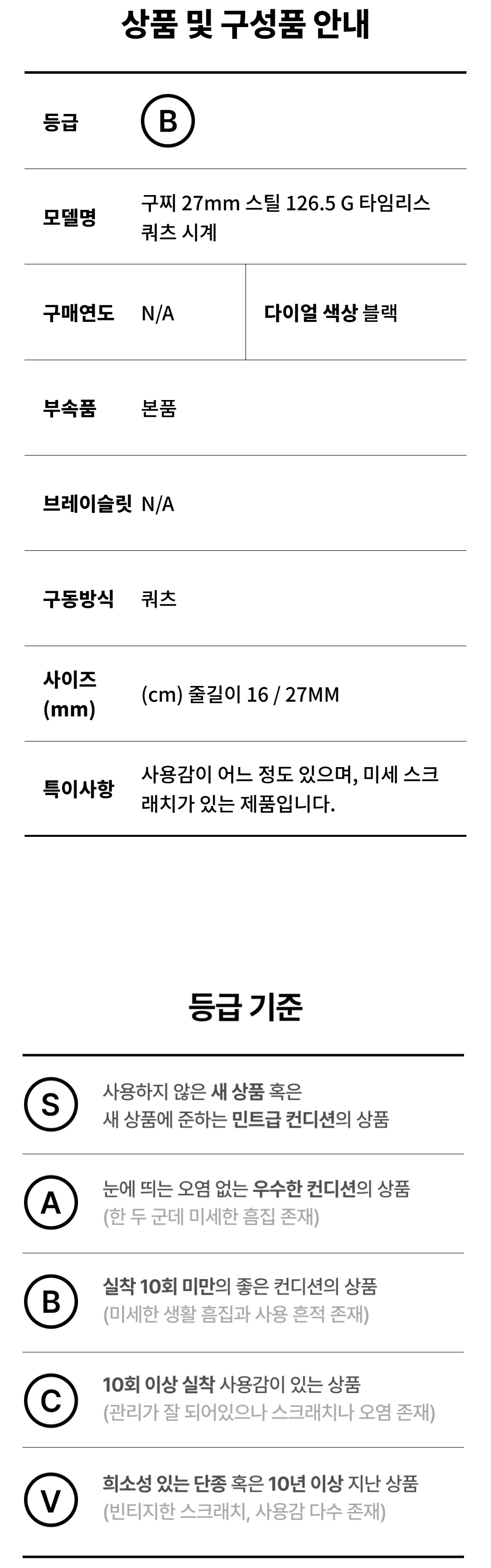 구찌 27mm 스틸 126.5 G 타임리스 쿼츠 시계 C-B39750