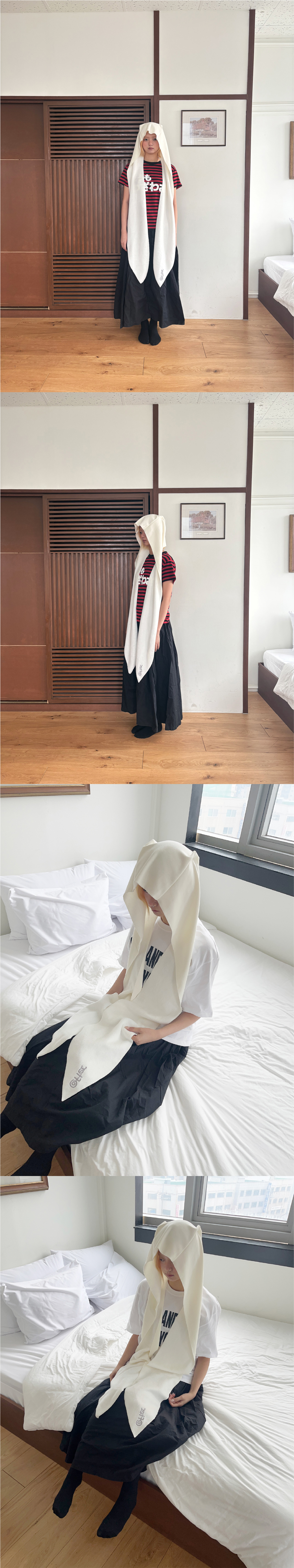 밍크 안감으로 제작된 25FW 후드 머플러입니다. 양쪽 끈이 긴 기장으로 디자인되어, 다양한 연출이 가능한 제품입니다. - 좌측 끈 @fter 자수 - 끝단 인터로크 마무리 - 남녀 모두 착용가능 - 인조밍크 COTTON 100%(안감제외)
