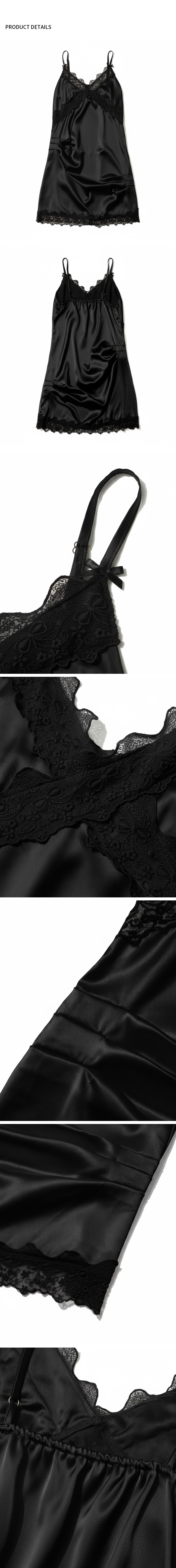 페이키 페이키 리본 핀턱 슬립 드레스 블랙