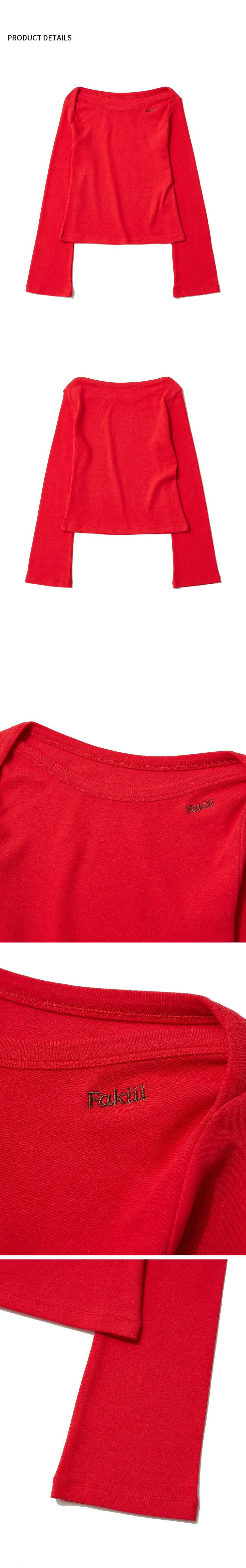 Fakiii Two-Way Boat Neck Long Sleeve Red