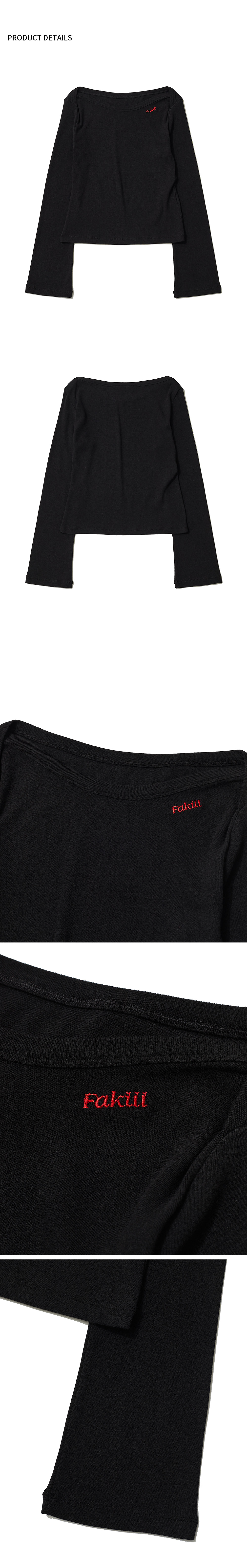Fakiii Two-Way Boat Neck Long Sleeve Black