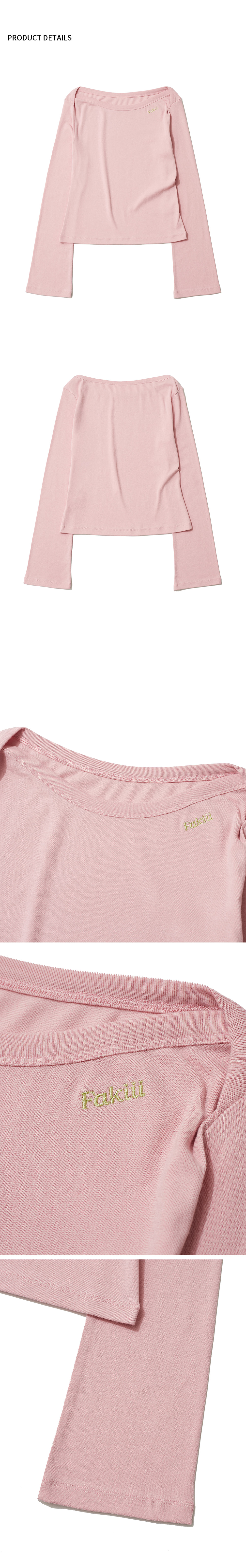 Fakiii Two-Way Boat Neck Long Sleeve Pink