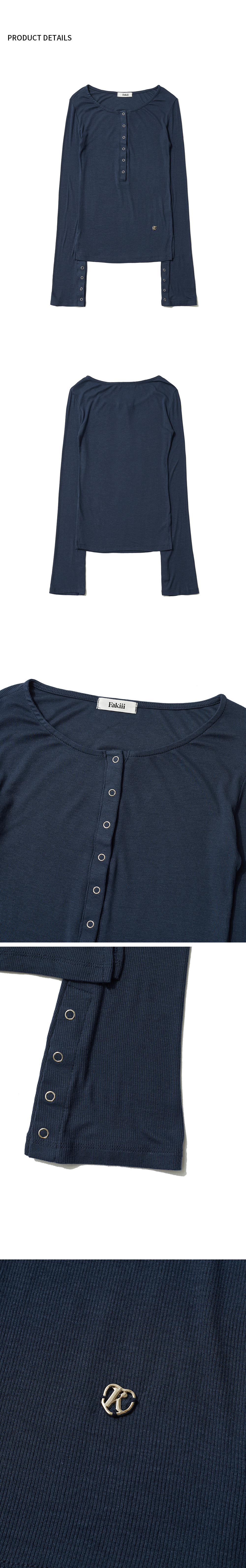 페이키 버튼 벨 라인 니트 네이비