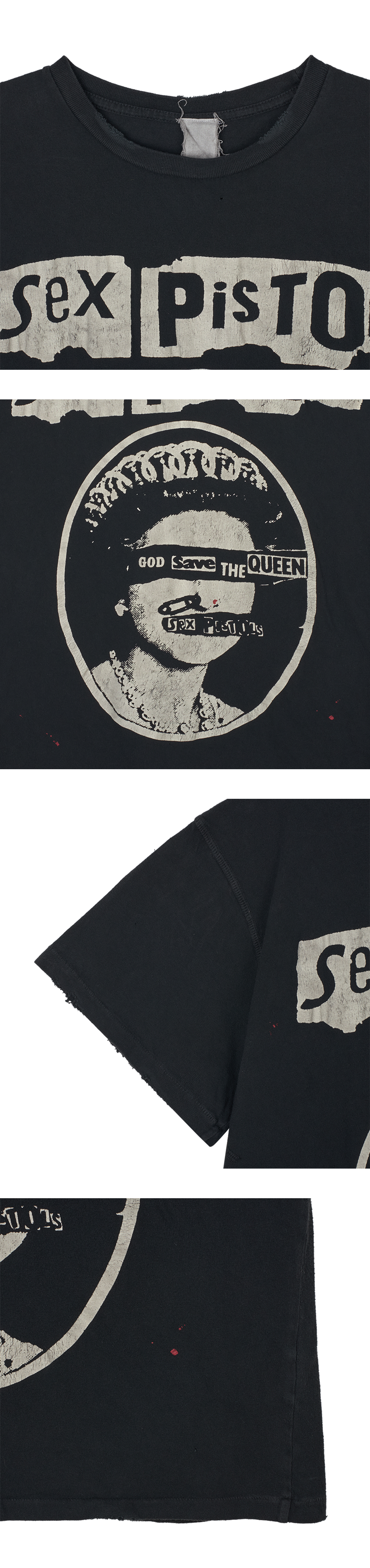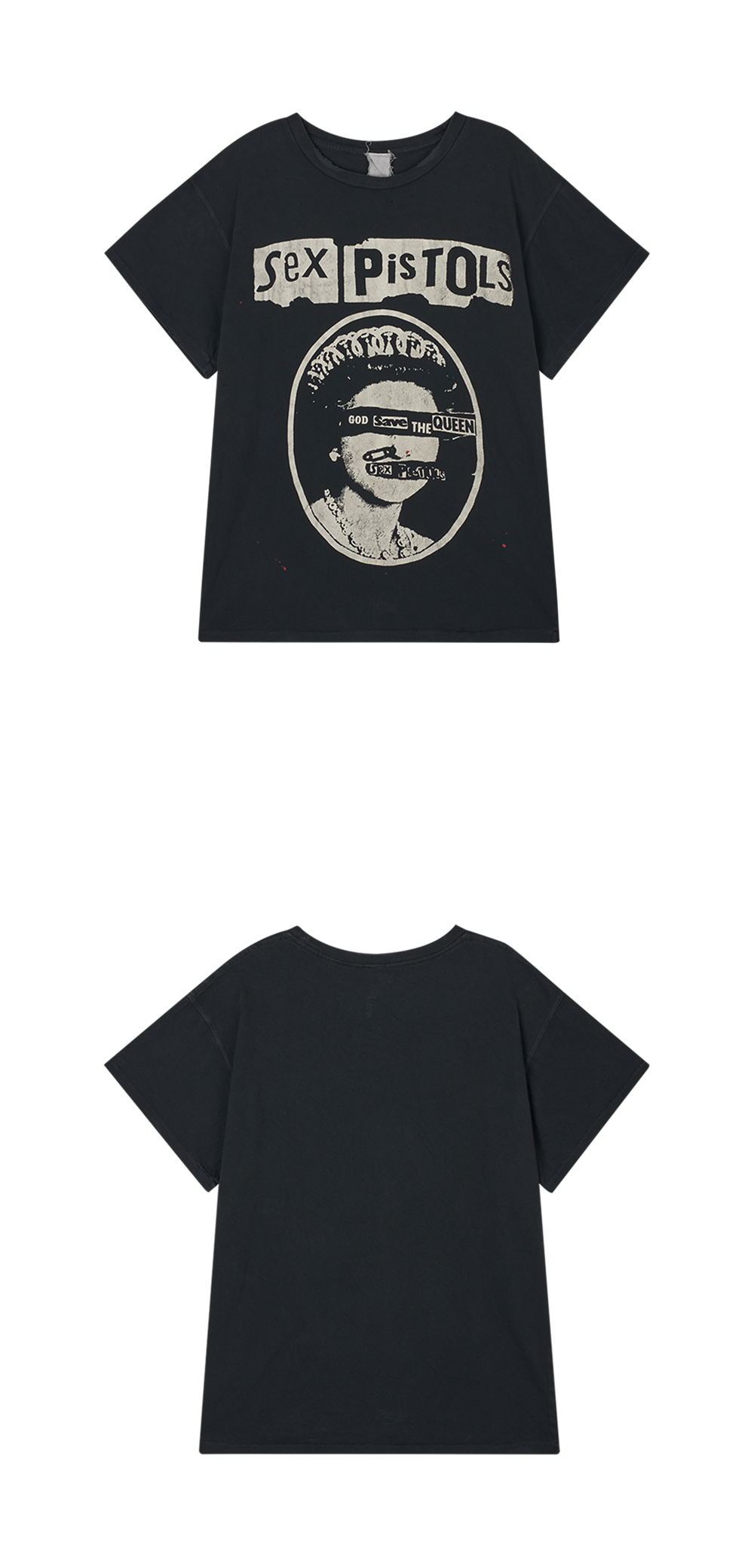 메이드원 섹스 피스톨즈 콜입니다. - 90년대 빈티지 무드의 유니섹스 핏 - 부드러운 고급 코튼 소재 및 블라인드 스티치 밑단 - 제품별로 상이한 고유의 빈티지 데미지 디테일 - 섹스 피스톨즈의 상징적인 'God Save The Queen' 아트워크 그래픽 - 미국 LA 수작업 제작