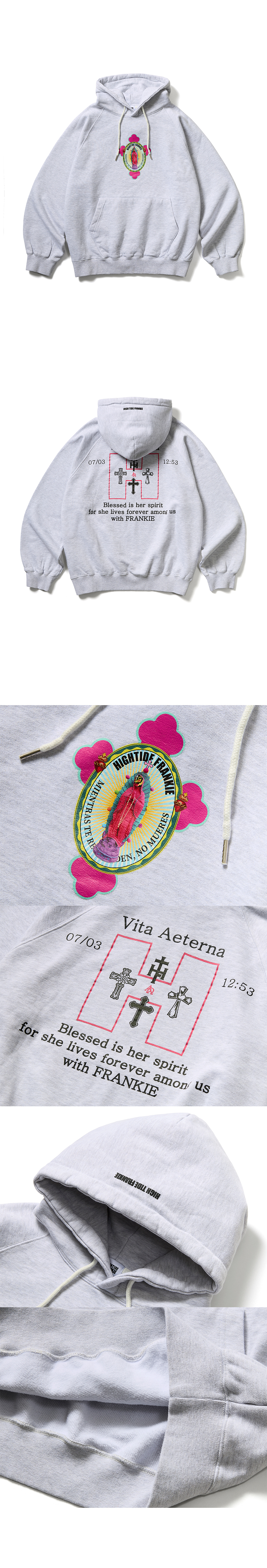 Nosso bebe amado Long Sleeve Tee 의 후디 버전 입니다 850g의 헤비웨이트 기모 쭈리 원단으로 제작된 레글런 후디입니다 멕시코의 상징인 루차 리브레와 십자가를 담은 과달루페의 성모를 그래픽으로 앞면 가슴에 디지털 프린트로 표현 하였습니다 뒷판엔 멕시코 카톨릭 전통의 성심 아이콘과 다양한 십자가 모양을 그래픽으로 완성 하여 나염으로 표현 하였으며 완성 제품을 노멀 워싱 하여 수축률을 최소화 하였습니다 어깨선을 레글런 으로 진행 하여 체구, 성별을 떠나 많은 분들이 편하게 입기 좋은 제품 입니다 -혼용률- 면 100% -주의- 드라이 권장 단독세탁 이염주의 옷을 뒤집어 미지근한 물에 세탁 표백제나 강력한 세제 사용 금지 건조기 사용 금지 프린트 부분 다림질 금지 Made in KOREA