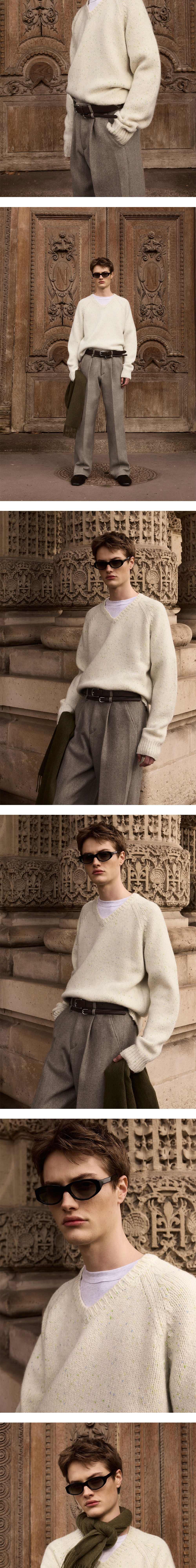 - 루즈 핏 - V넥 실루엣 - 컬러 믹스 원사