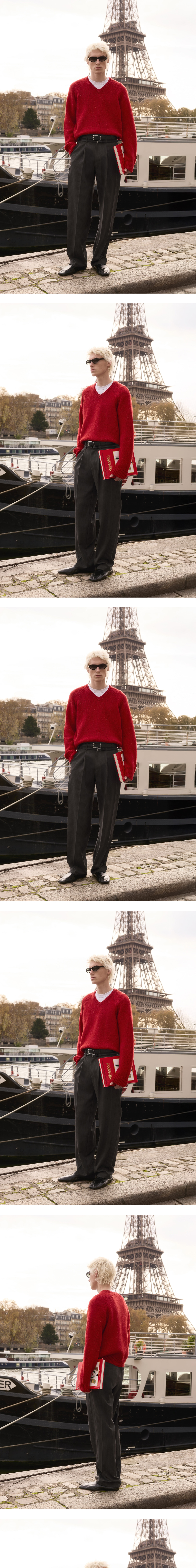 - 루즈 핏 - V넥 실루엣 - 컬러 믹스 원사
