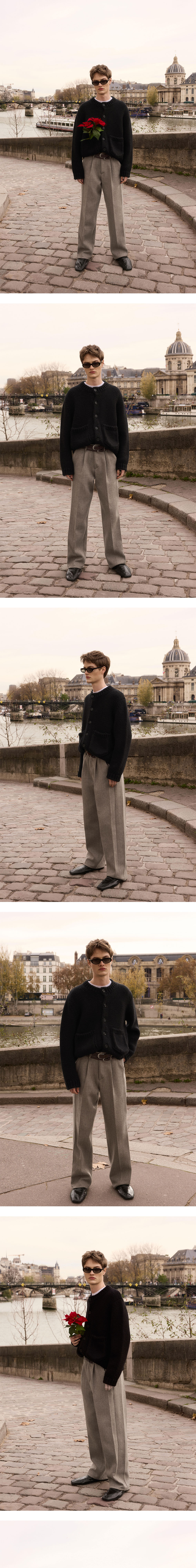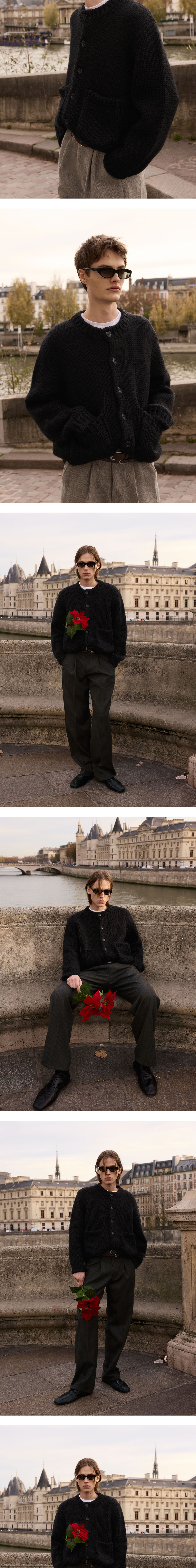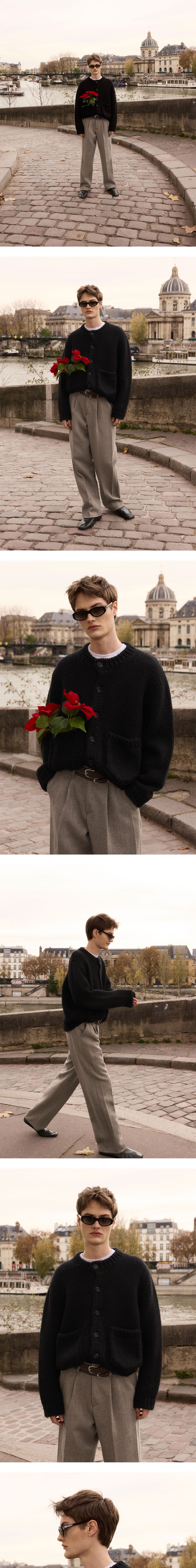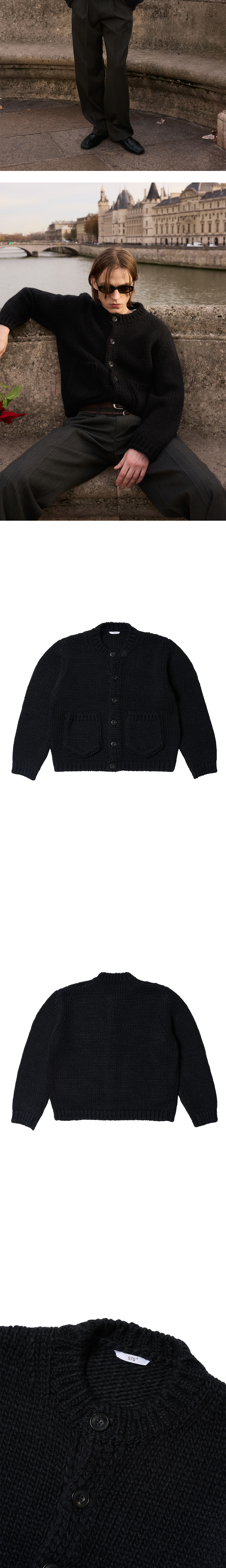 - 스탠다드 핏 - 라운드넥 가디건 실루엣 - 입체 포켓 디테일 - 로고 각인 소뿔 단추