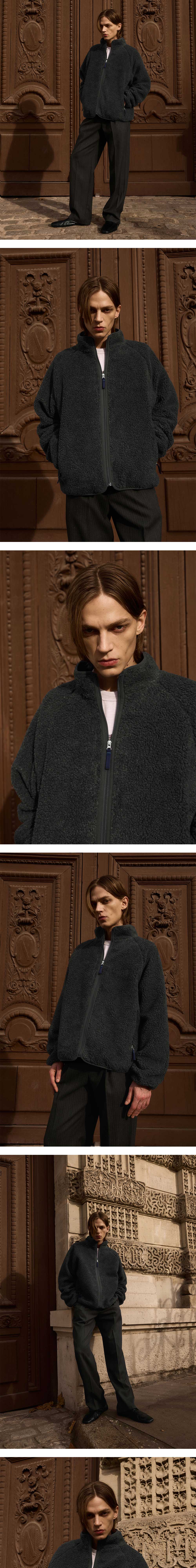 - 루즈 핏 - 아이보리 컬러 - 플리스 텍스쳐 - 컬러 파이핑 디테일 - 배색 풀러 디테일