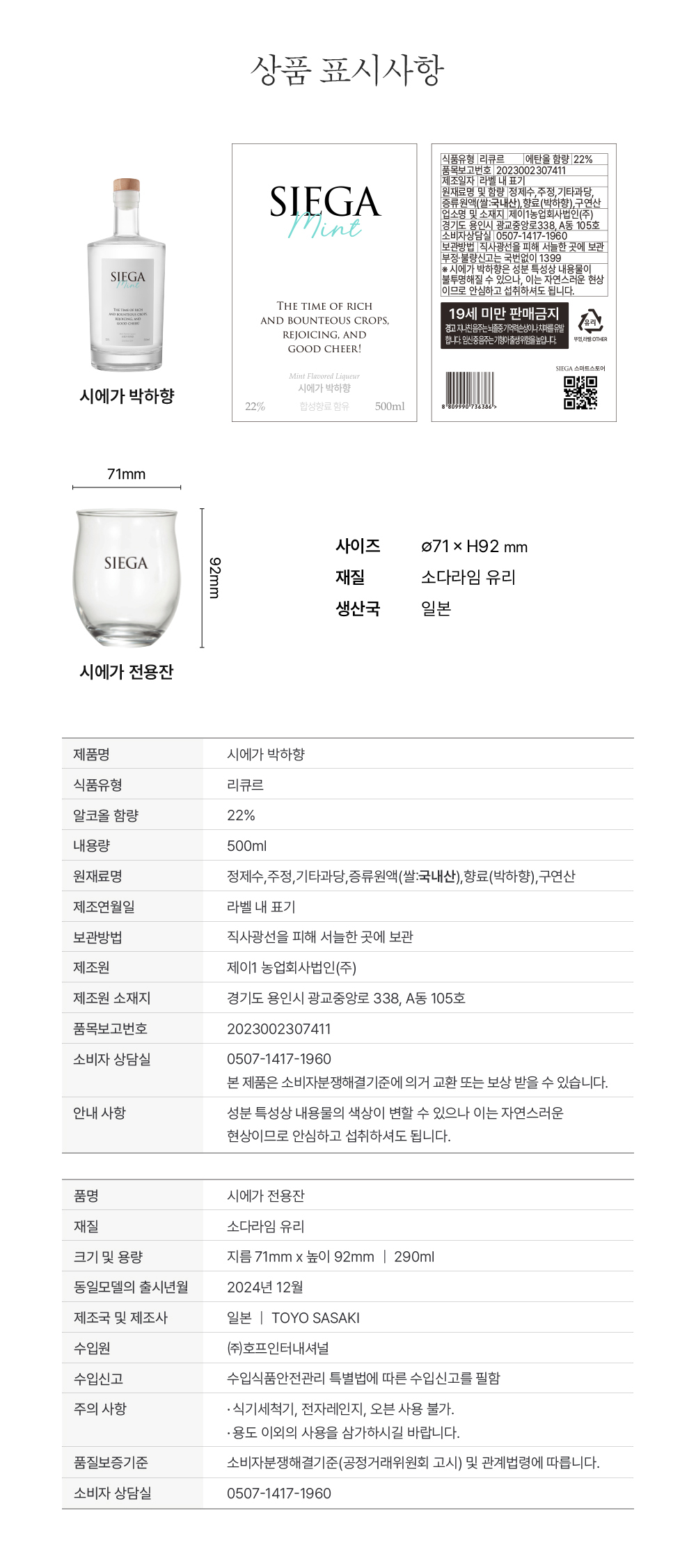 시에가 박하향 전용잔 선물세트