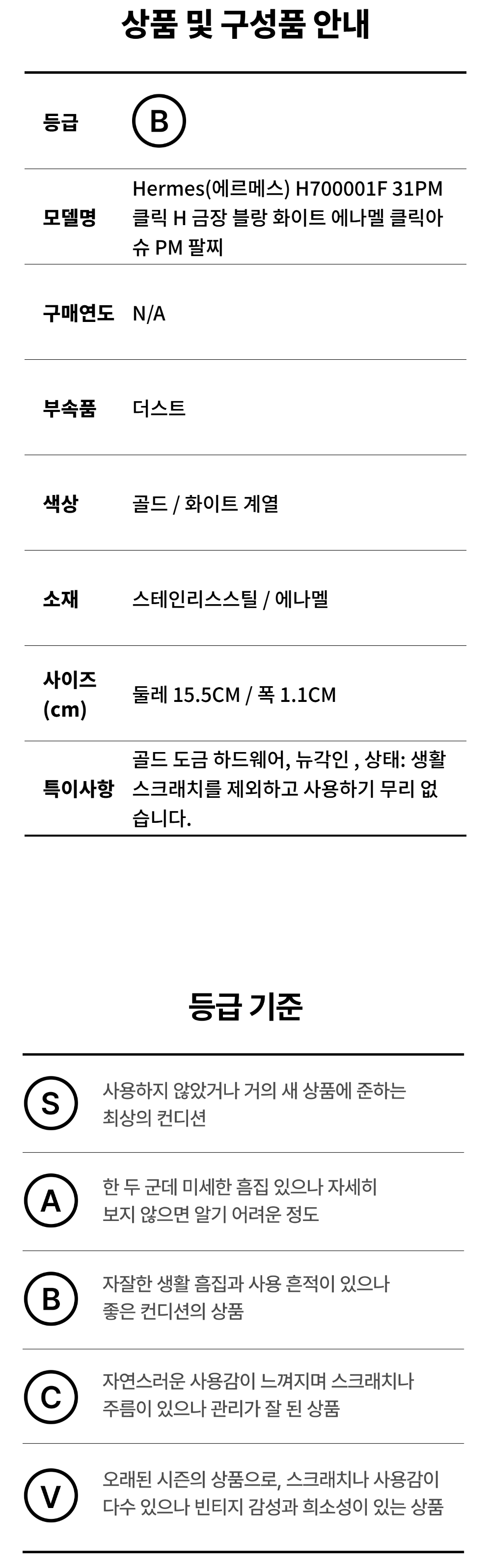H700001F 31PM 클릭 H 금장 블랑 화이트 에나멜 클릭아슈 PM 팔찌