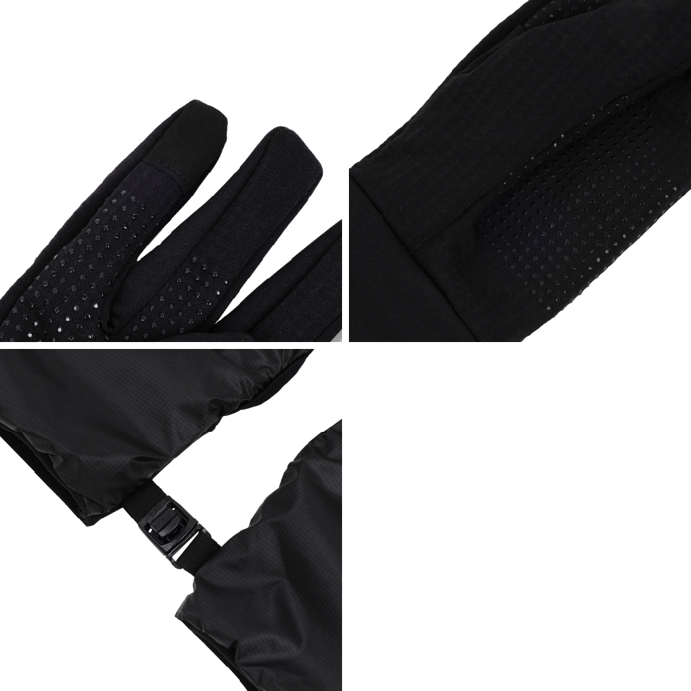 얇은 나일론 소재 소프트쉘로 손을 감싸 열 손실을 감소시켜 영하로 떨어지는 겨울철 아웃도어 액티비티에서도 적절한 보온성을 유지시켜주는 러닝 장갑 Connector Buckle – 두 짝을 하나로 이어주는 버클 Membrane Technology – 멤브레인 기술이 적용된 소재 Printing Details – ARC™ 로고 및 슬로건 프린팅 Windproof & DWR – 방풍 및 발수 2 Way Mitts Design – 벙어리(미트) 장갑과 일반 장갑 두 가지 스타일로 활용 가능한 장갑 Packable Soft-Shell on Wristband – 손목밴드에 접어서 보관이 가능한 소프트쉘 SmartTouch Pannel – 기민한 반응성의 스마트터치 패널 Anti-Slip Silicone Nubs – 손바닥 부위 미끄럼방지 실리콘 돌기
