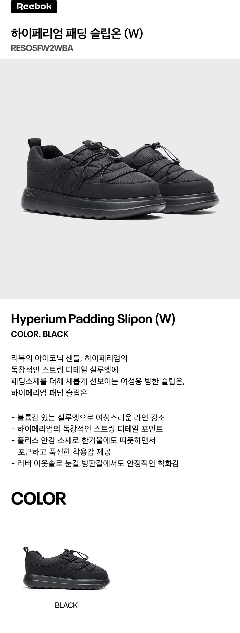 리복 하이페리엄 패딩 슬립온 우먼 블랙