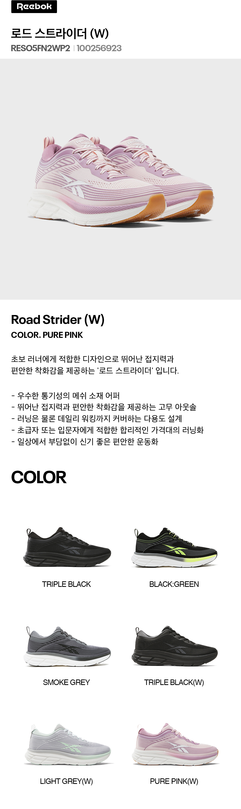 리복 로드 스트라이더 우먼 퓨어 핑크