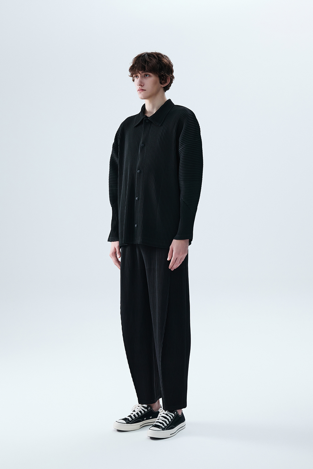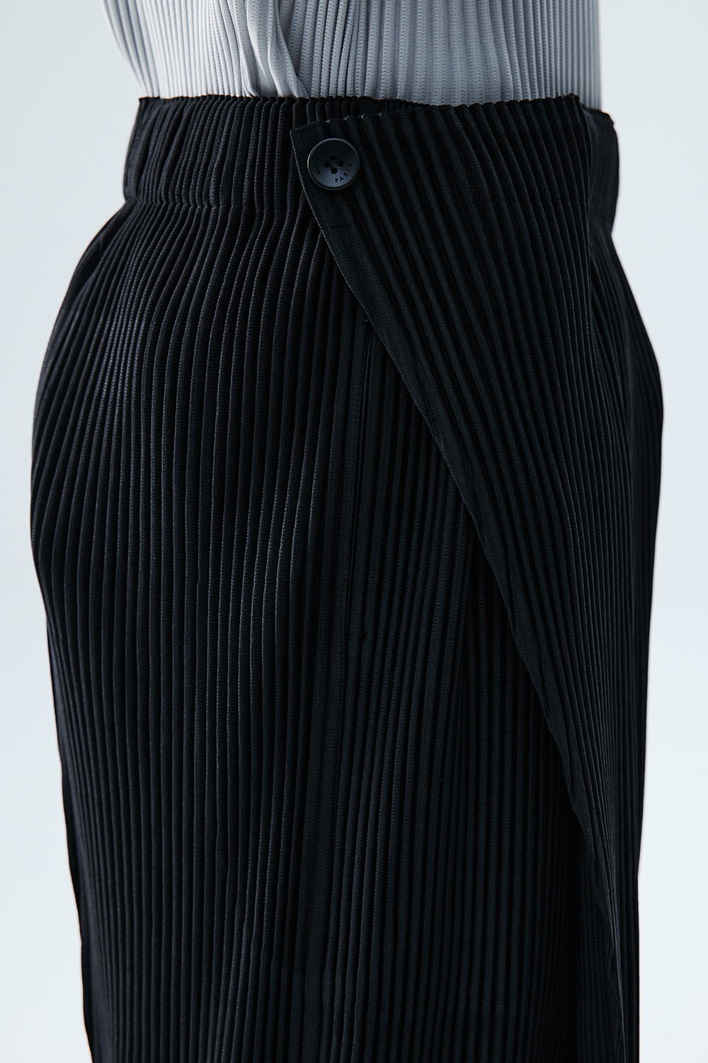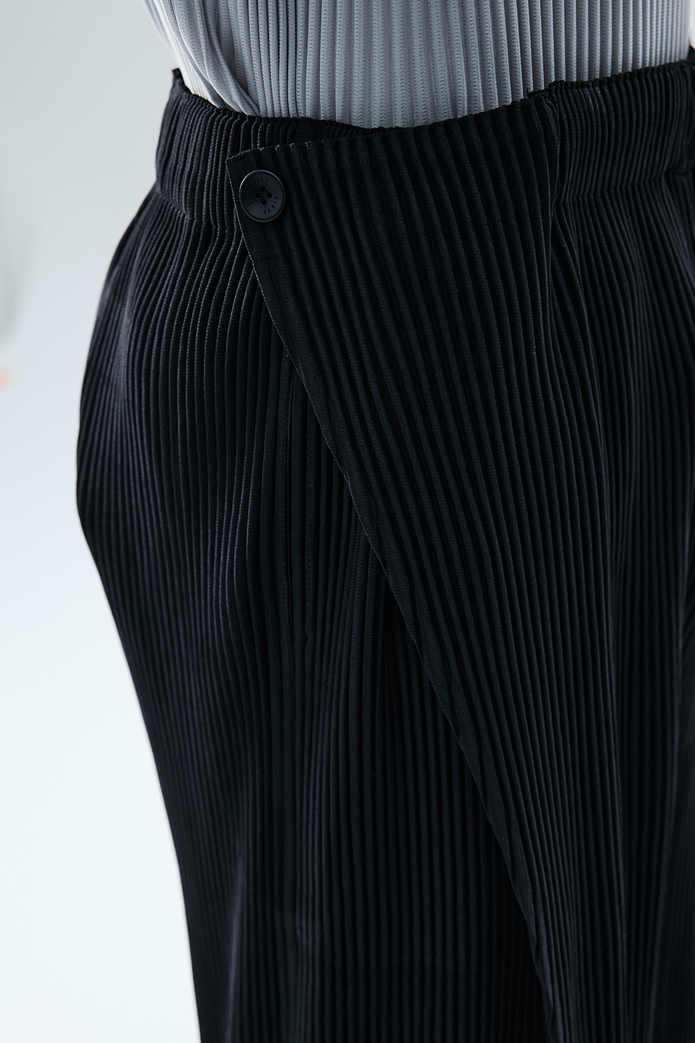 몽플리쎄 공용 바이어스 컷팅 스트레이트핏 플리츠 팬츠 블랙