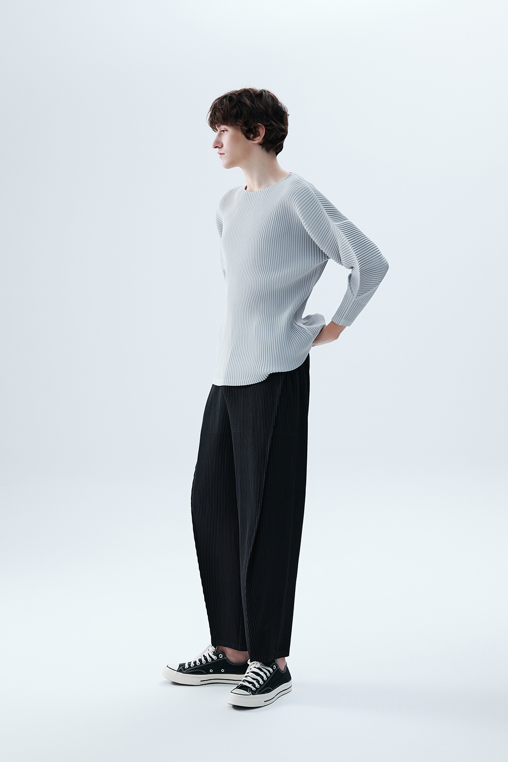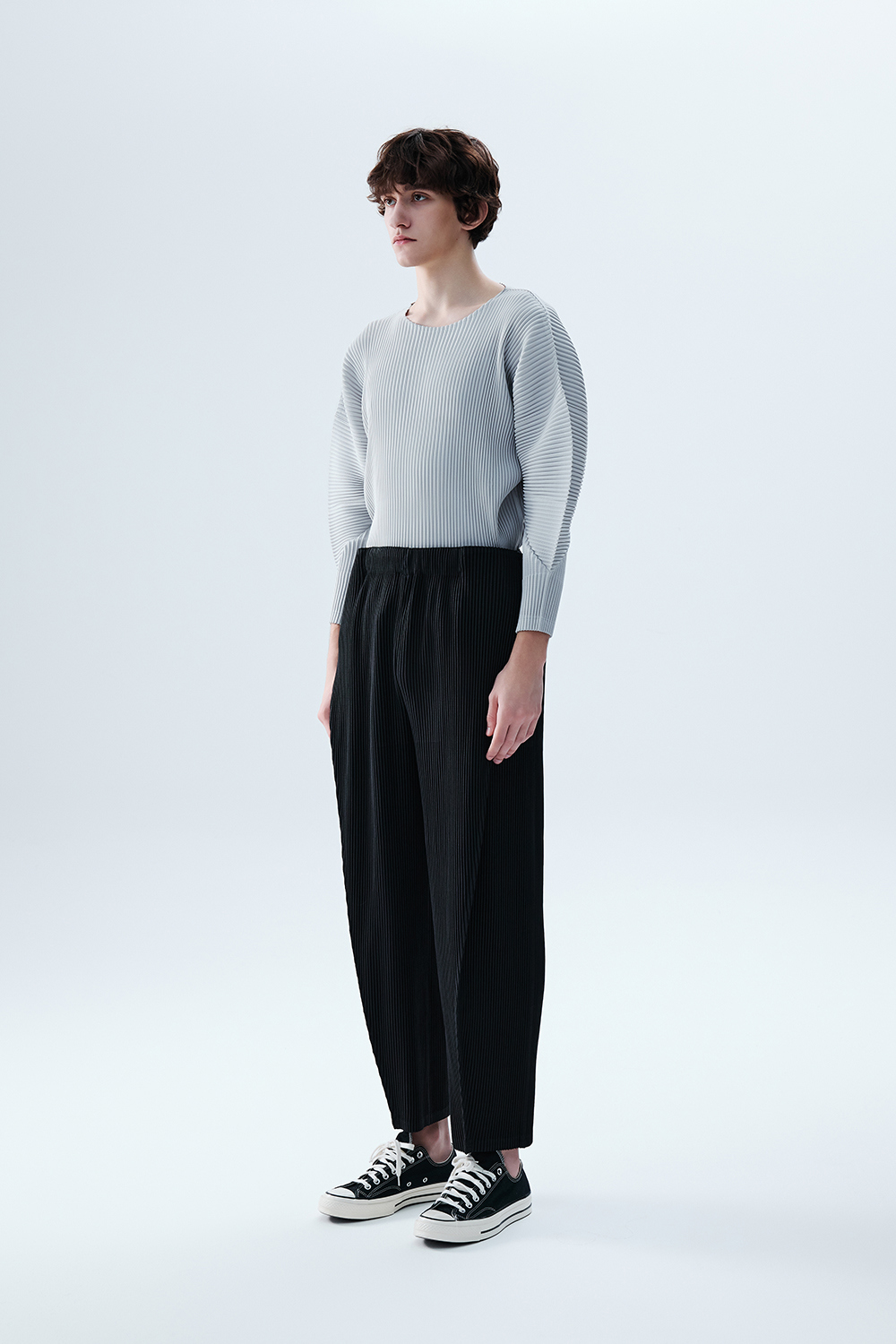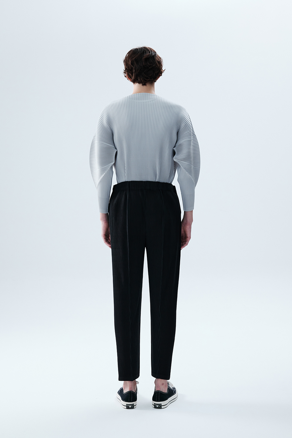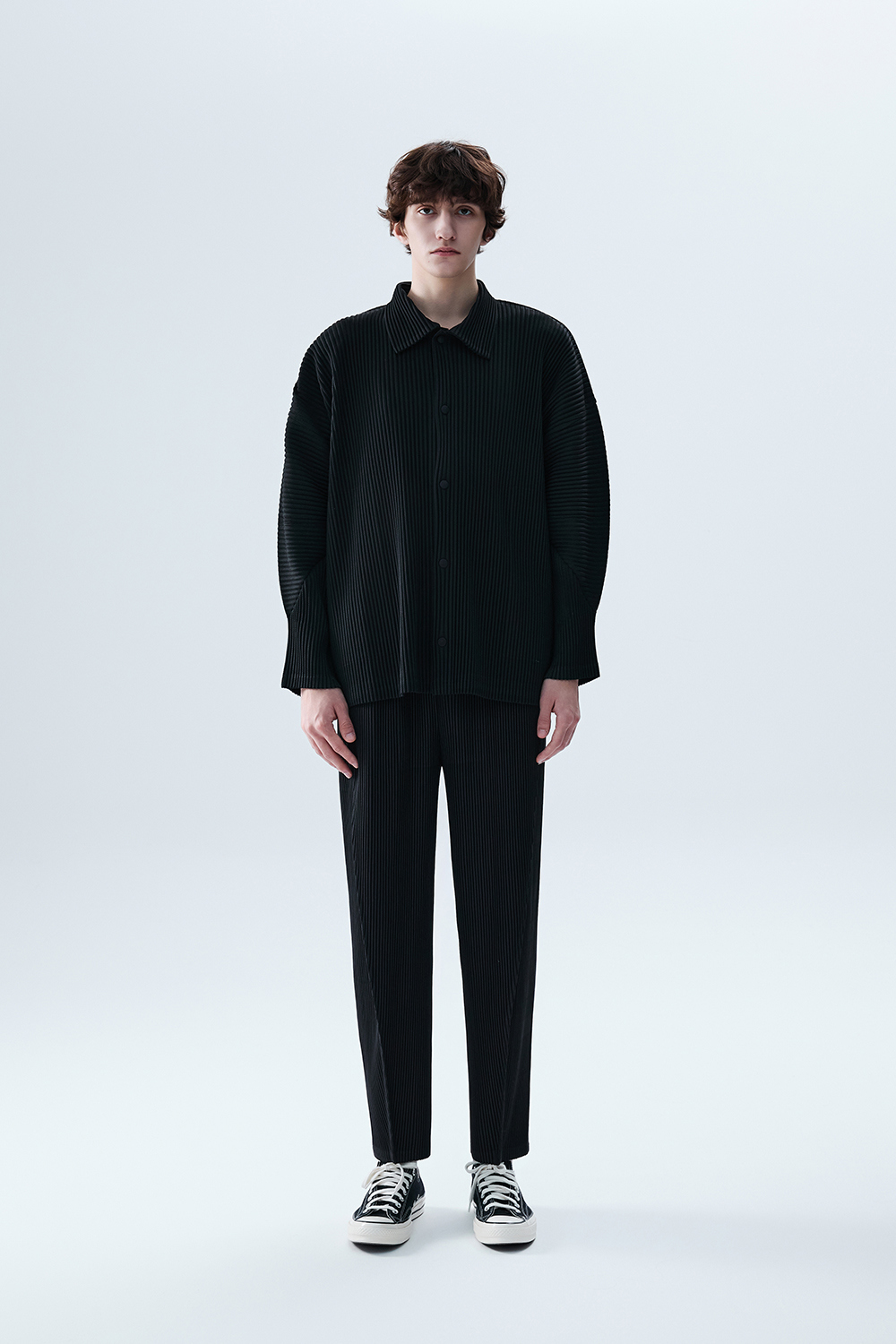 몽플리쎄 공용 바이어스 컷팅 스트레이트핏 플리츠 팬츠 블랙