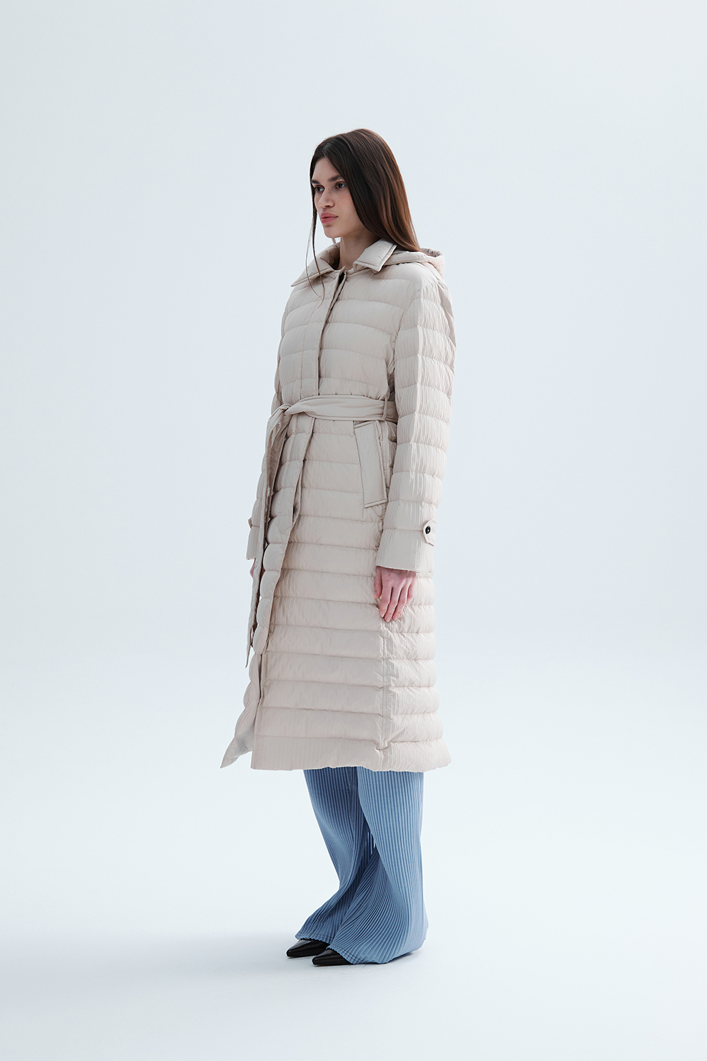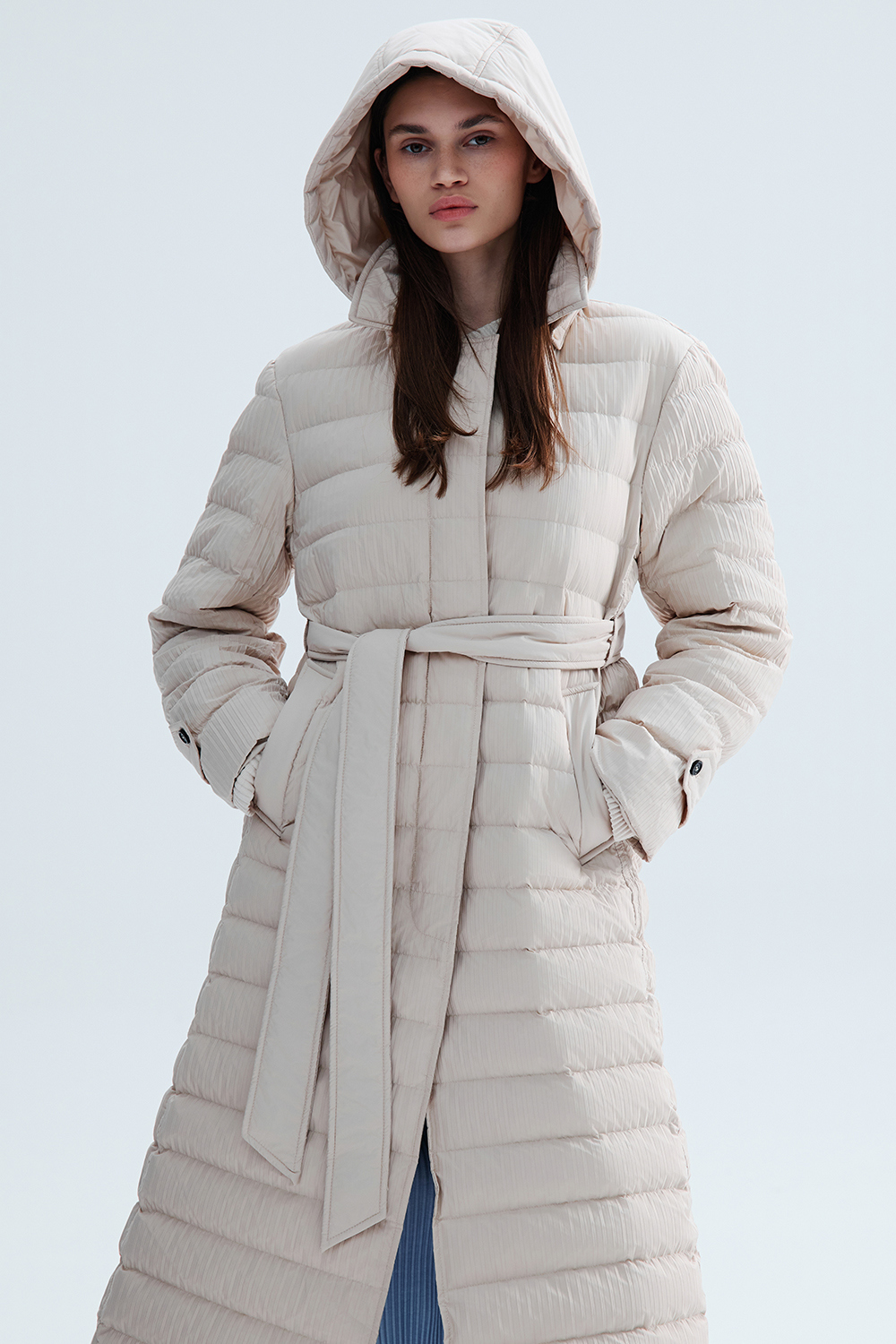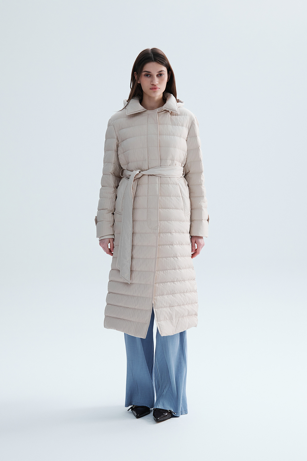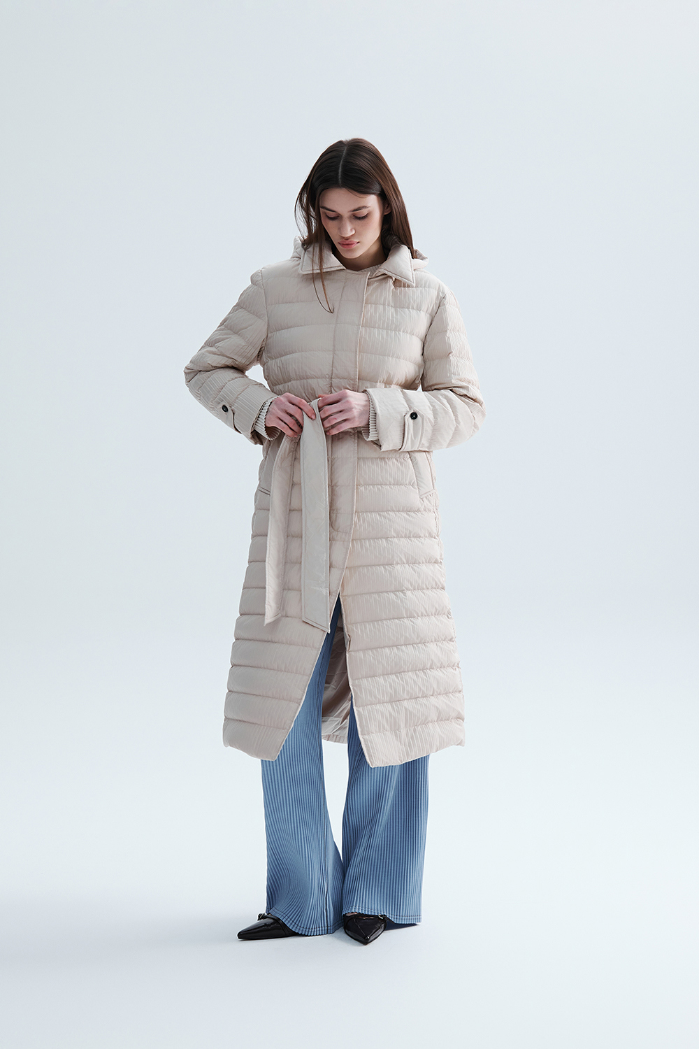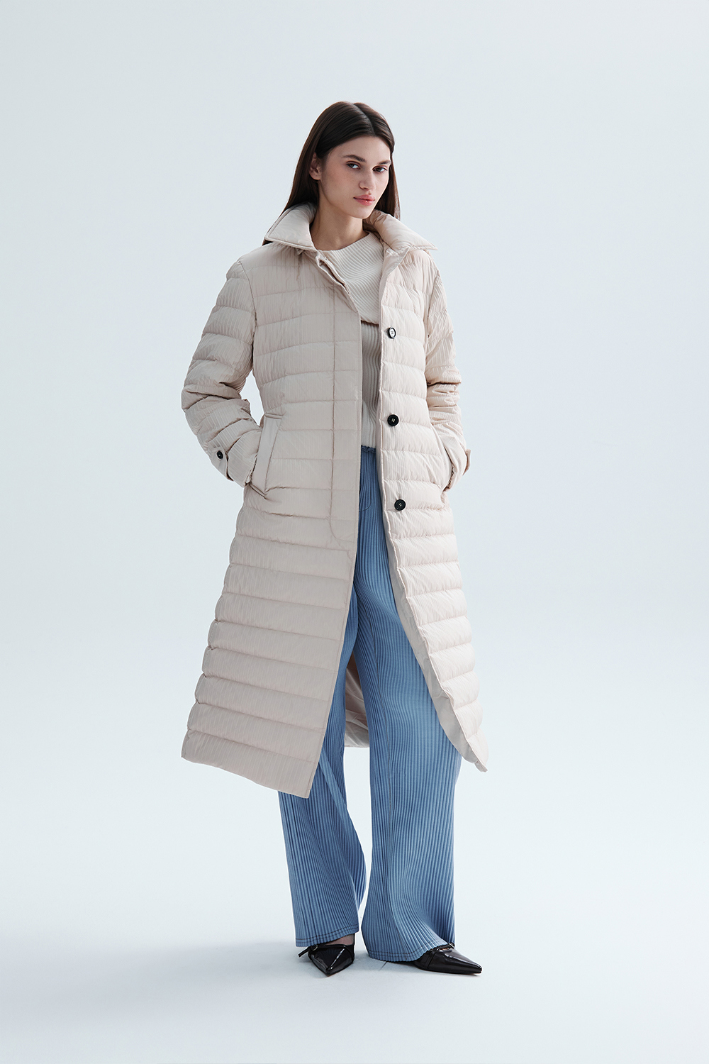 몽플리쎄 여성 프레스티지 플리쎄 구스 롱 다운 아이보리