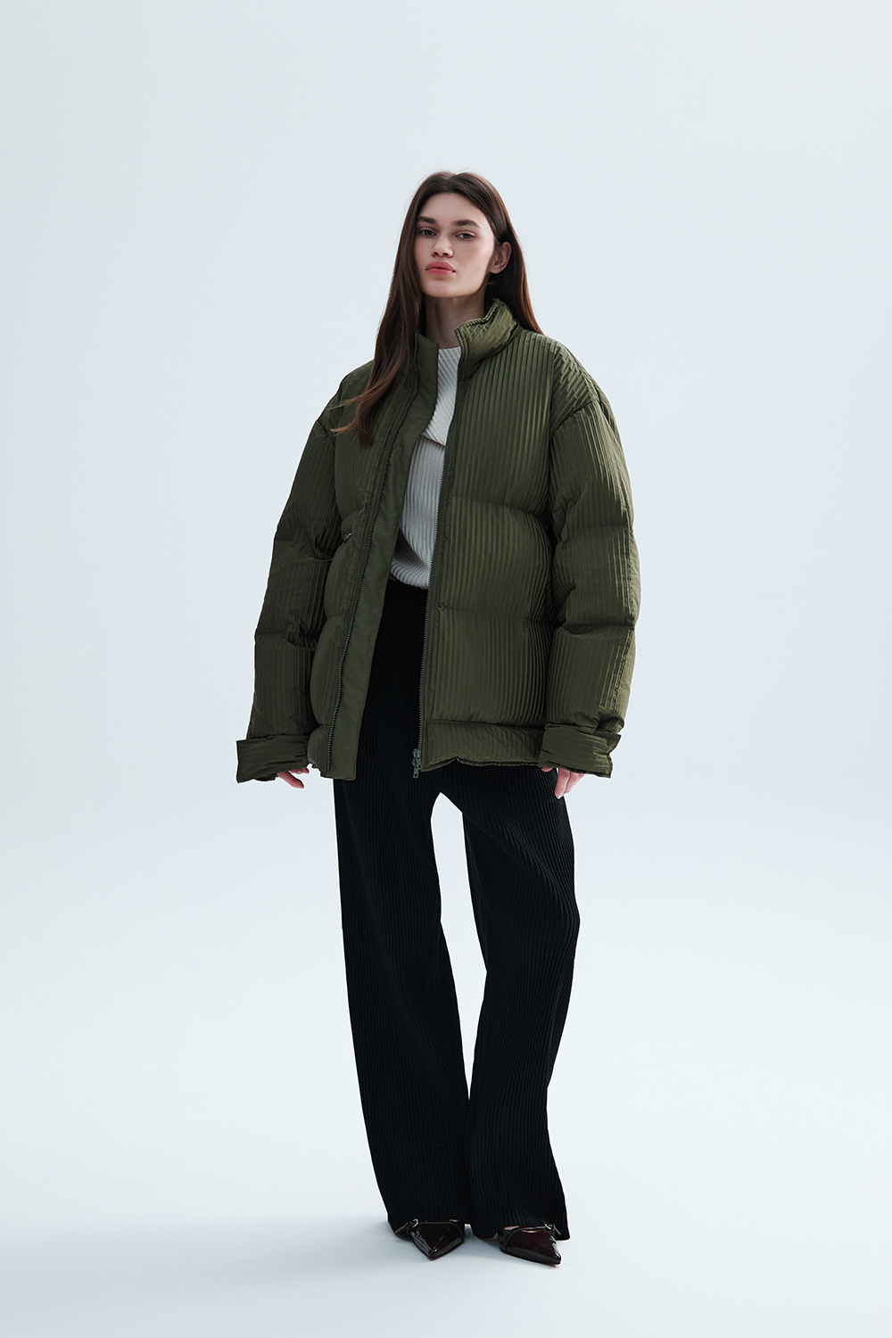 몽플리쎄 남성 플리쎄 구스 허브 다운 아우터 카키