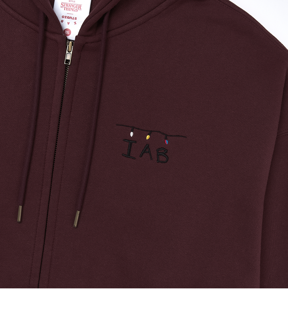 아이앱 스튜디오 x 기묘한 이야기 트리 라이츠 집업 후드 버건디