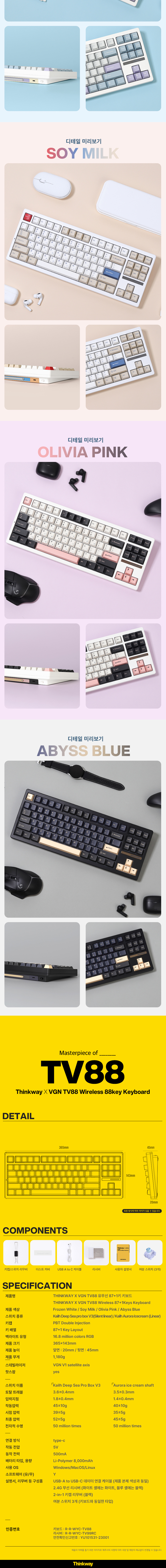 [손목받침대 증정] ThinkWay TV88 Keyboard Soy Milk AI