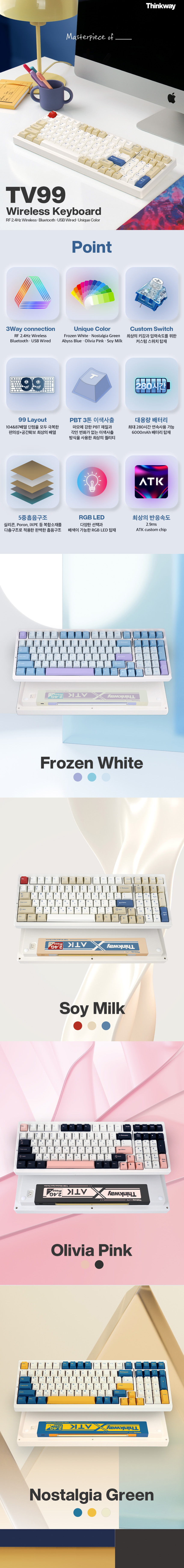 씽크웨이 TV99 유무선 99배열 기계식 키보드 프로즌화이트 오로라 아이스크림축