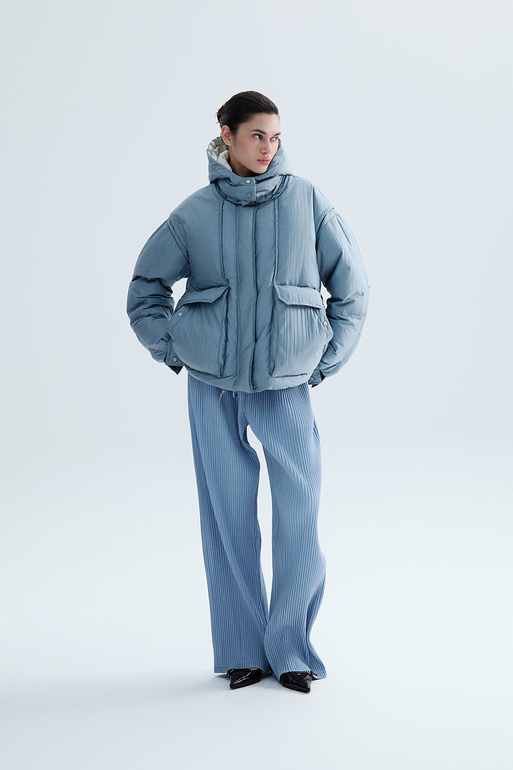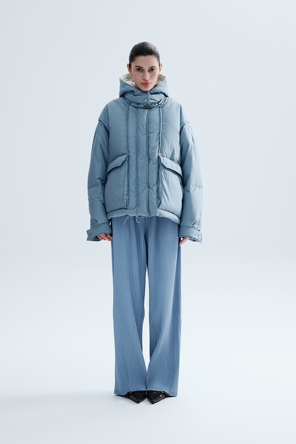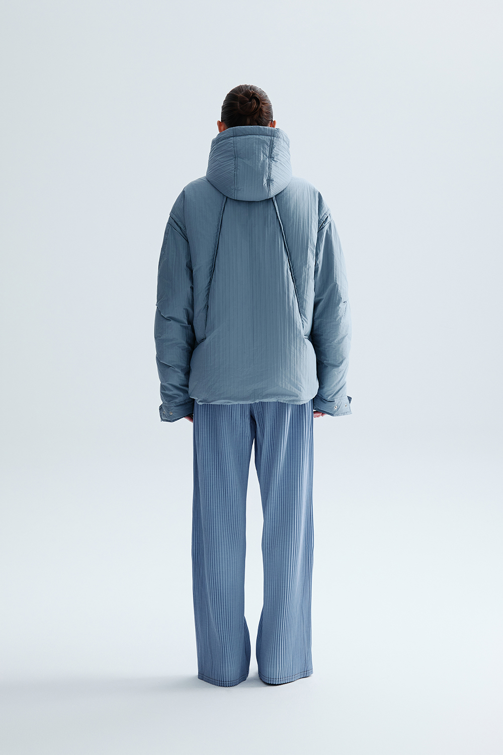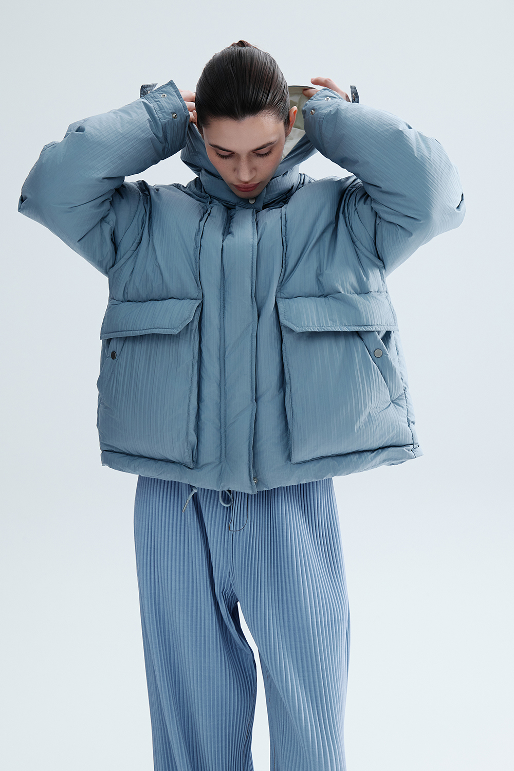 Monplisse Unisex Puff Plisse Hoodie Goose Down Outer (Blue)