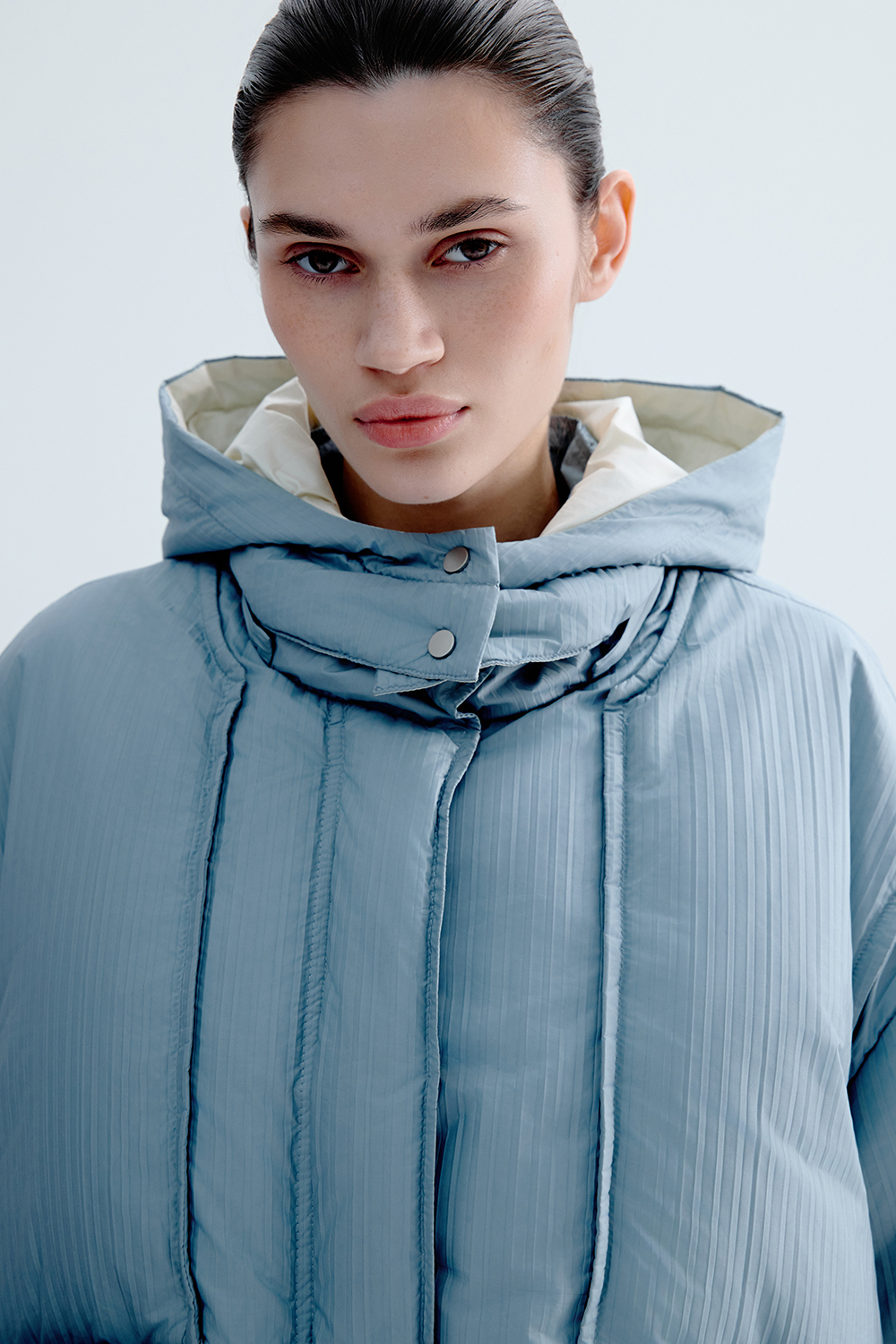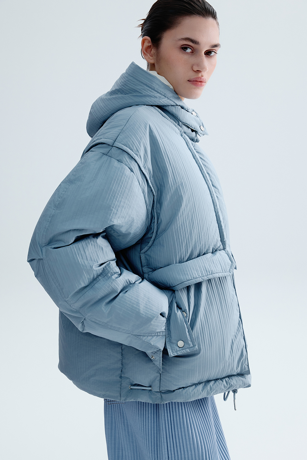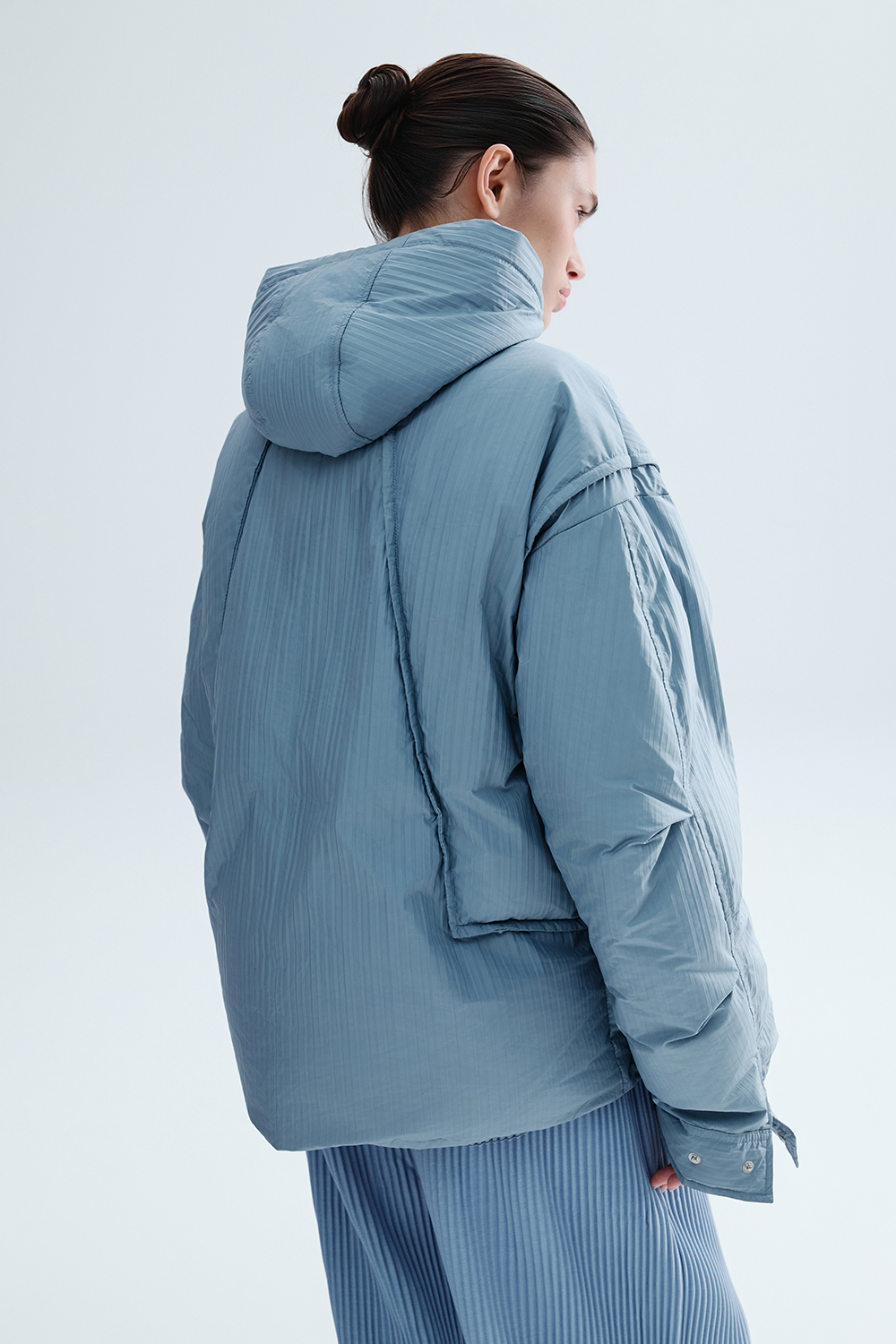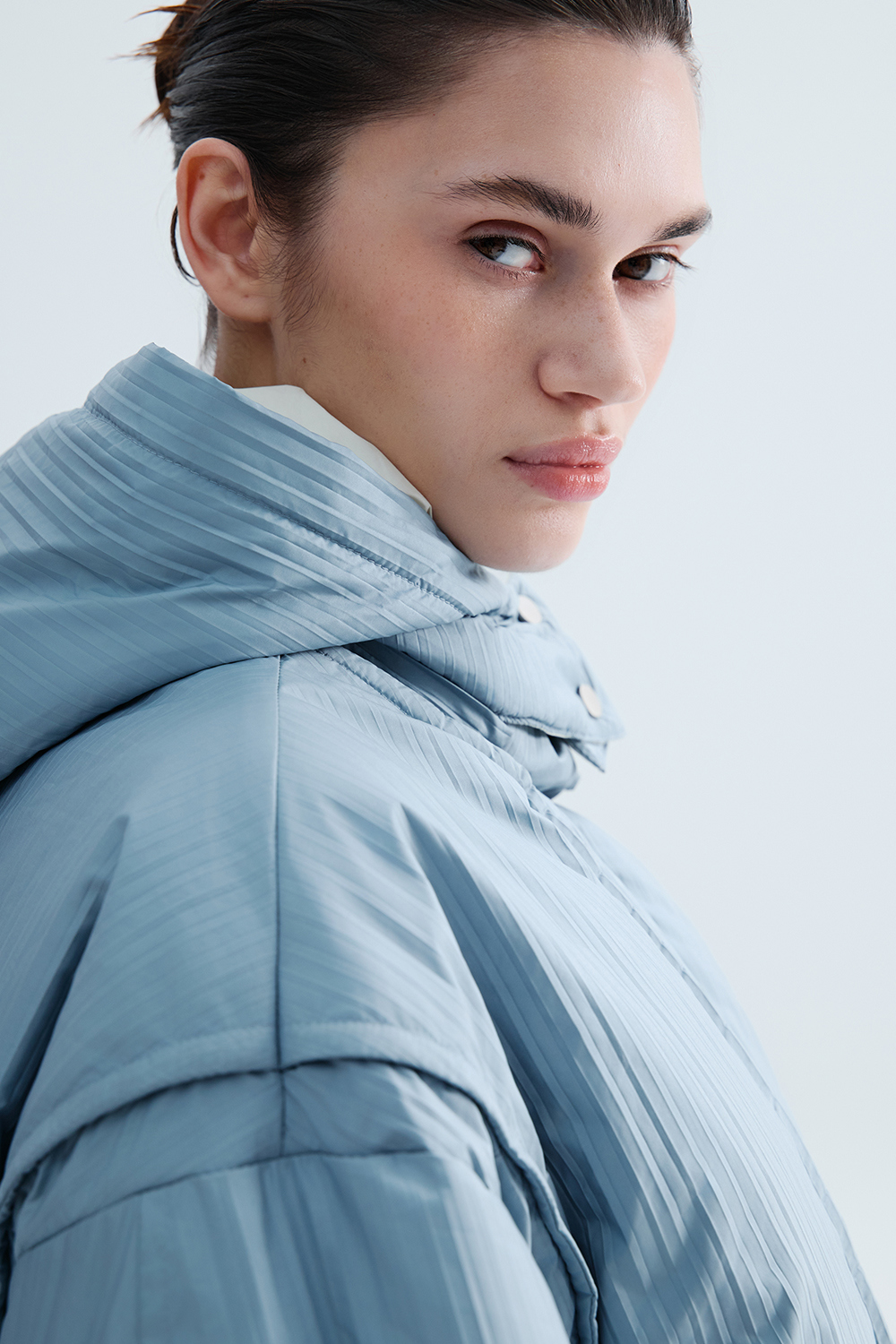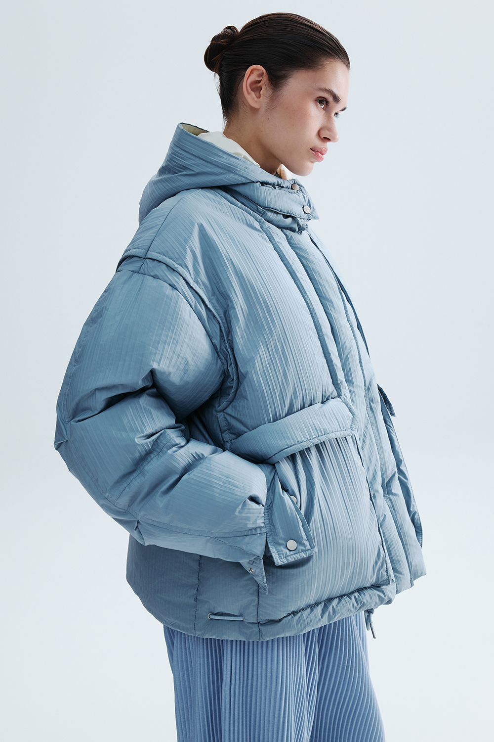 Monplisse Unisex Puff Plisse Hoodie Goose Down Outer (Blue)