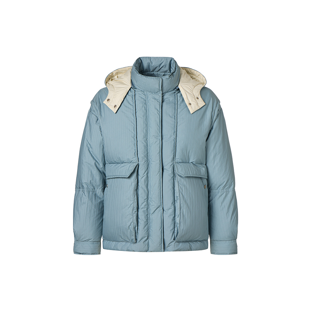 몽플리쎄 공용 퍼프 플리쎄 후드 탈착 구스 다운 점퍼 블루