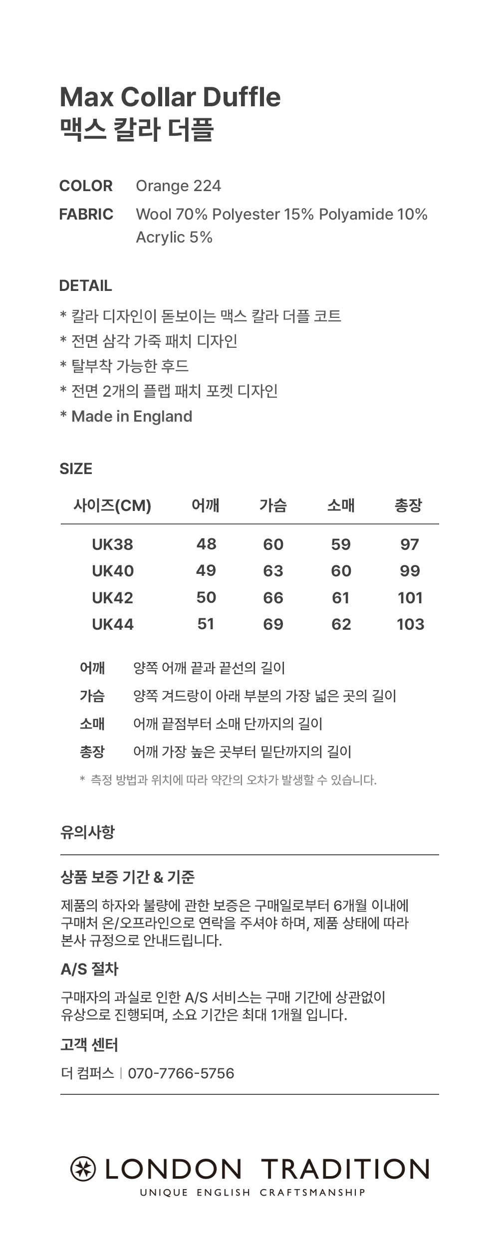 | 어깨 | 가슴단면 | 소매 | 총장 |