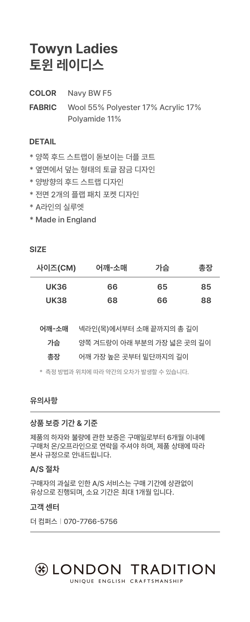 런던 트레디션 토윈 레이디스 네이비 BW F5