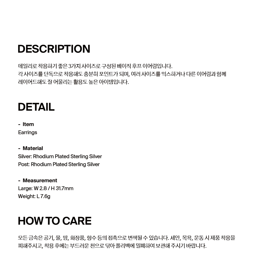 넘버링 #3208 라지 베이직 훕 이어링 실버
