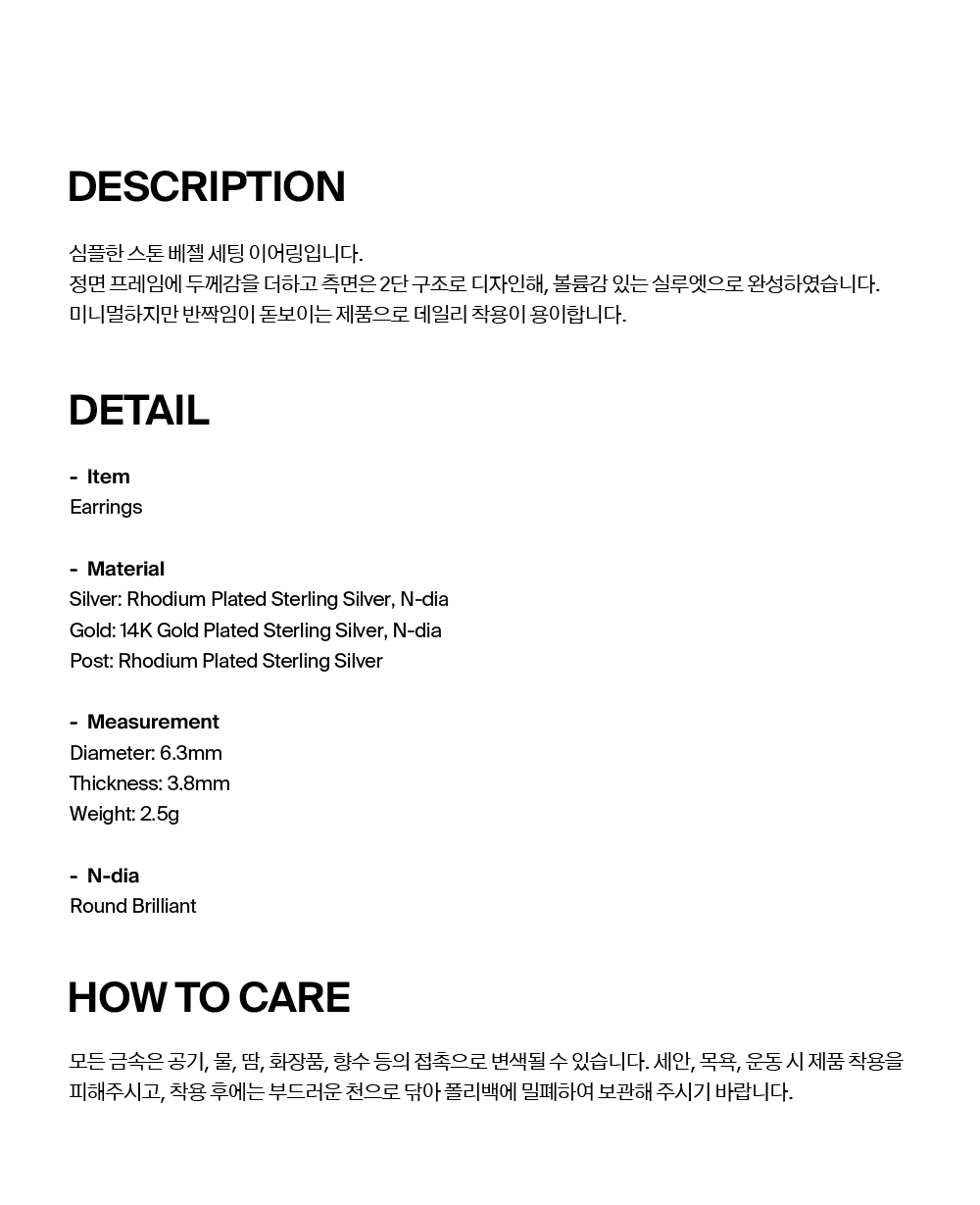 넘버링 #3201 베젤 세트 솔리테어 이어링 골드